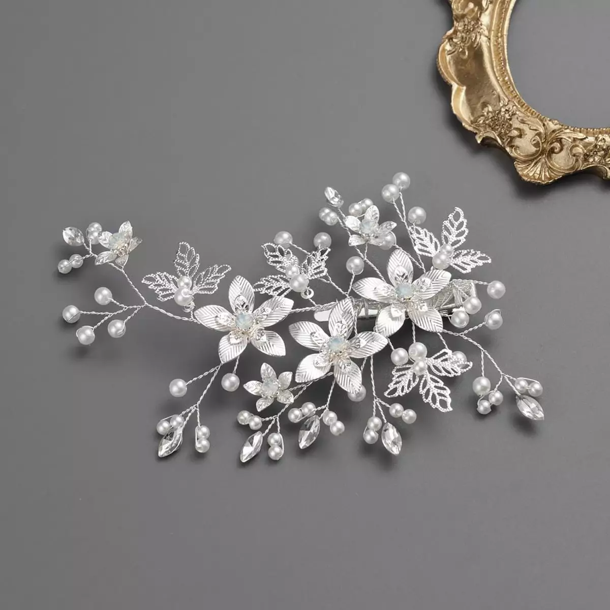 Eleganter Haarclip HC6249 von G. Westerleigh aus der aktuellen Kollektion. Romantisches Blumen-Design mit schimmernden Strasssteinen in klassischer Silberfassung. Der Clip besteht aus nicht allergischen Materialien (nickel- und bleifrei) und ist mit Silber überzogen. Dieser Kopfschmuck lässt sich ideal mit anderen Accessoires kombinieren und wirkt besonders schön mit einem Brautkleid oder Abendkleid.
