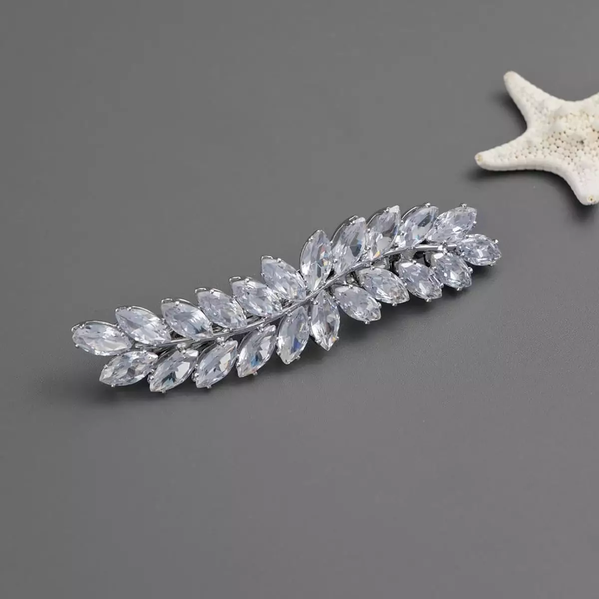 Eleganter Haarclip HC6379 von G. Westerleigh aus der aktuellen Kollektion. Klassisches Design mit schimmernden Cubic Zirconia Kristallen. Der Clip besteht aus nicht allergischen Materialien (nickel- und bleifrei) und ist mit Rhodium überzogen. Dieser Kopfschmuck lässt sich ideal mit anderen Accessoires kombinieren und wirkt besonders schön mit einem Brautkleid oder Abendkleid.