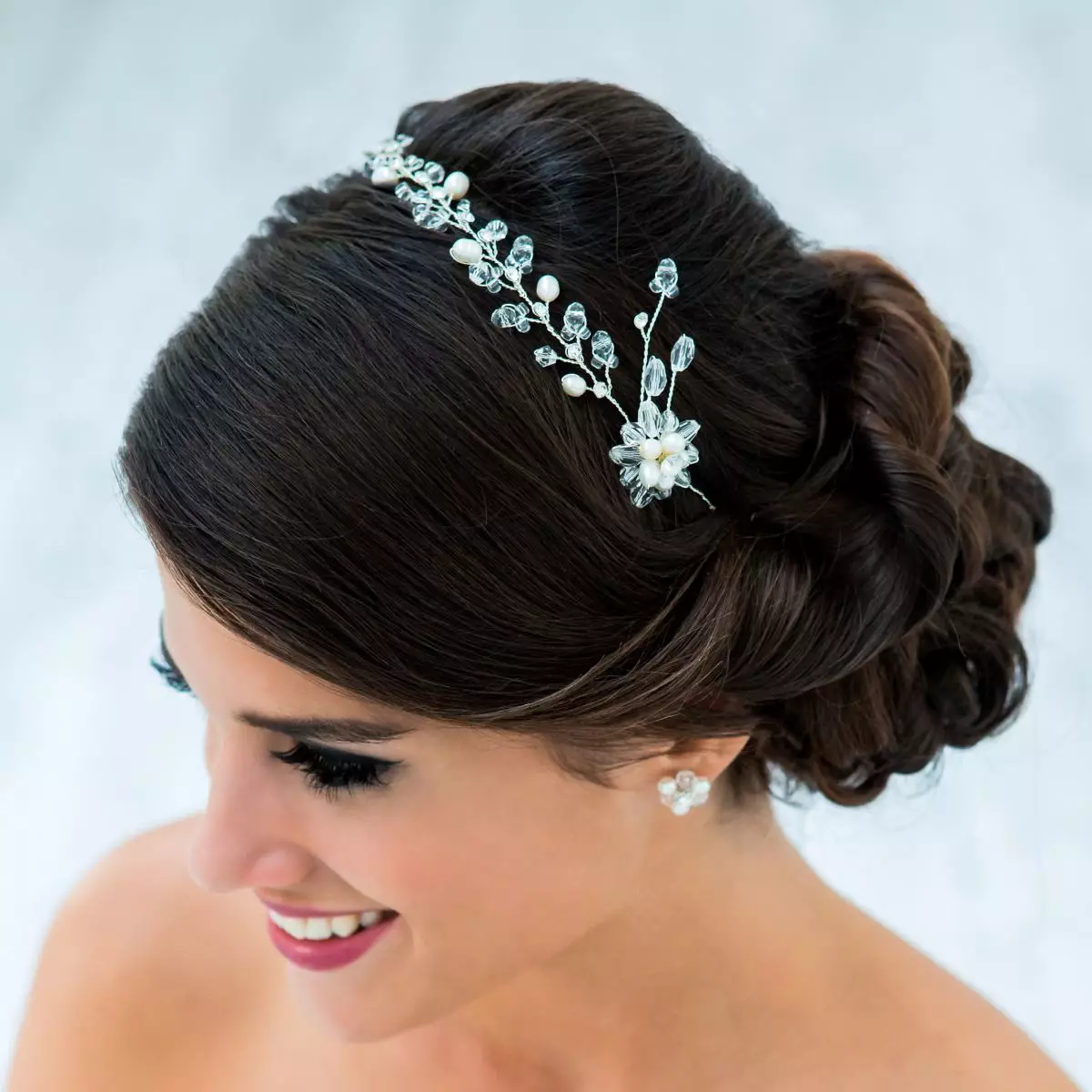 Der hübsche Kopfschmuck HS-J118 mit cremefarbenen Blumen von G. Westerleigh kommt als Haardraht und ist mit Kristallen und Perlen verziert, welche in aufwändiger Handarbeit eingearbeitet wurden. Der Haardraht verwandelt jede Frisur zu einer Traumfrisur. Dieser Kopfschmuck lässt sich ideal mit anderen Accessoires kombinieren und wirkt besonders schön mit einem Brautkleid, Abendkleid oder Kommunionkleid.