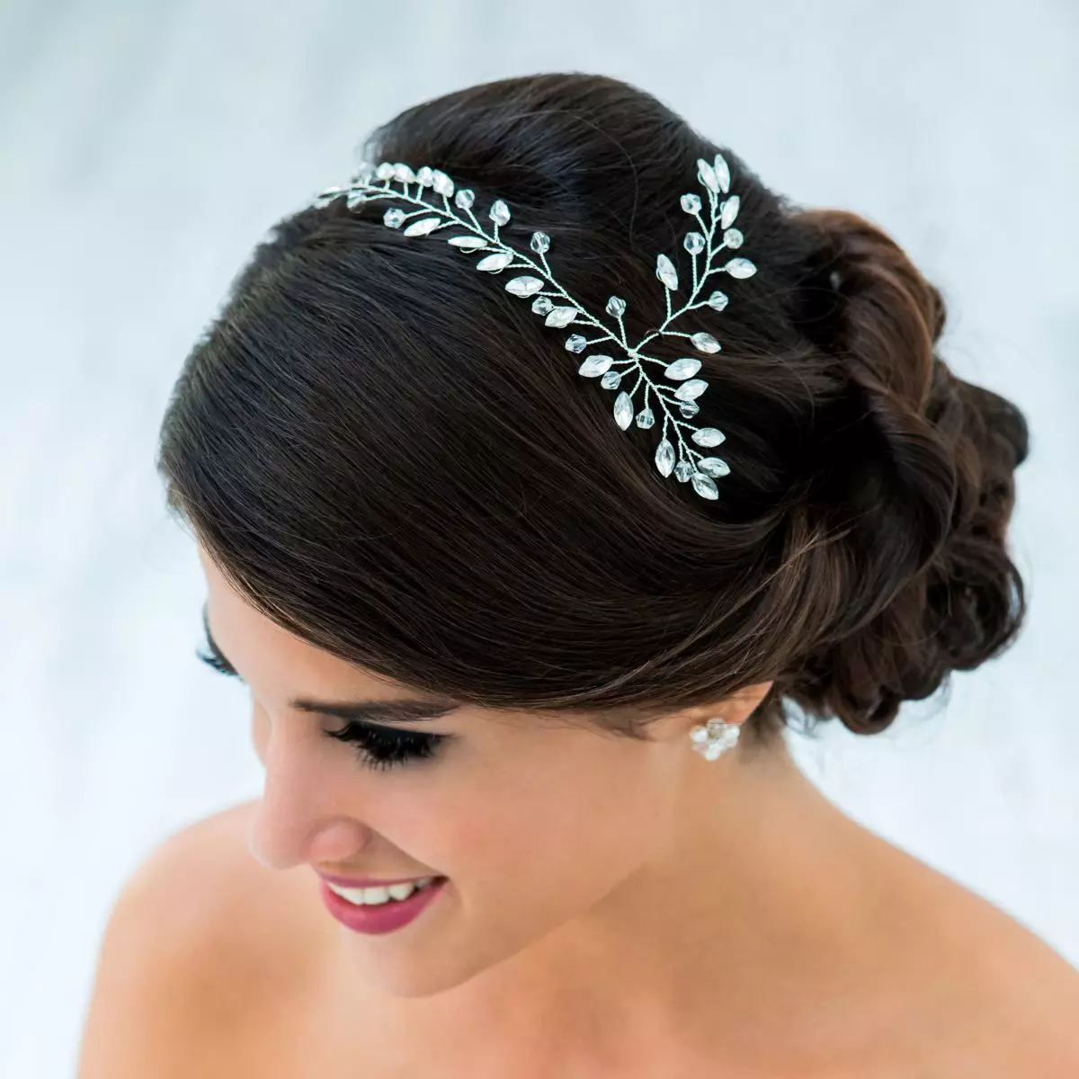 Der wunderschöne Kopfschmuck HS-J1846 im eleganten, floralen Design von G. Westerleigh kommt als Haardraht und ist mit Kristallen verziert, welche in aufwändiger Handarbeit eingearbeitet wurden. Der Haardraht verwandelt jede Frisur zu einer Traumfrisur. Dieser Kopfschmuck lässt sich ideal mit anderen Accessoires kombinieren und wirkt besonders schön mit einem Brautkleid, Abendkleid oder Kommunionkleid.