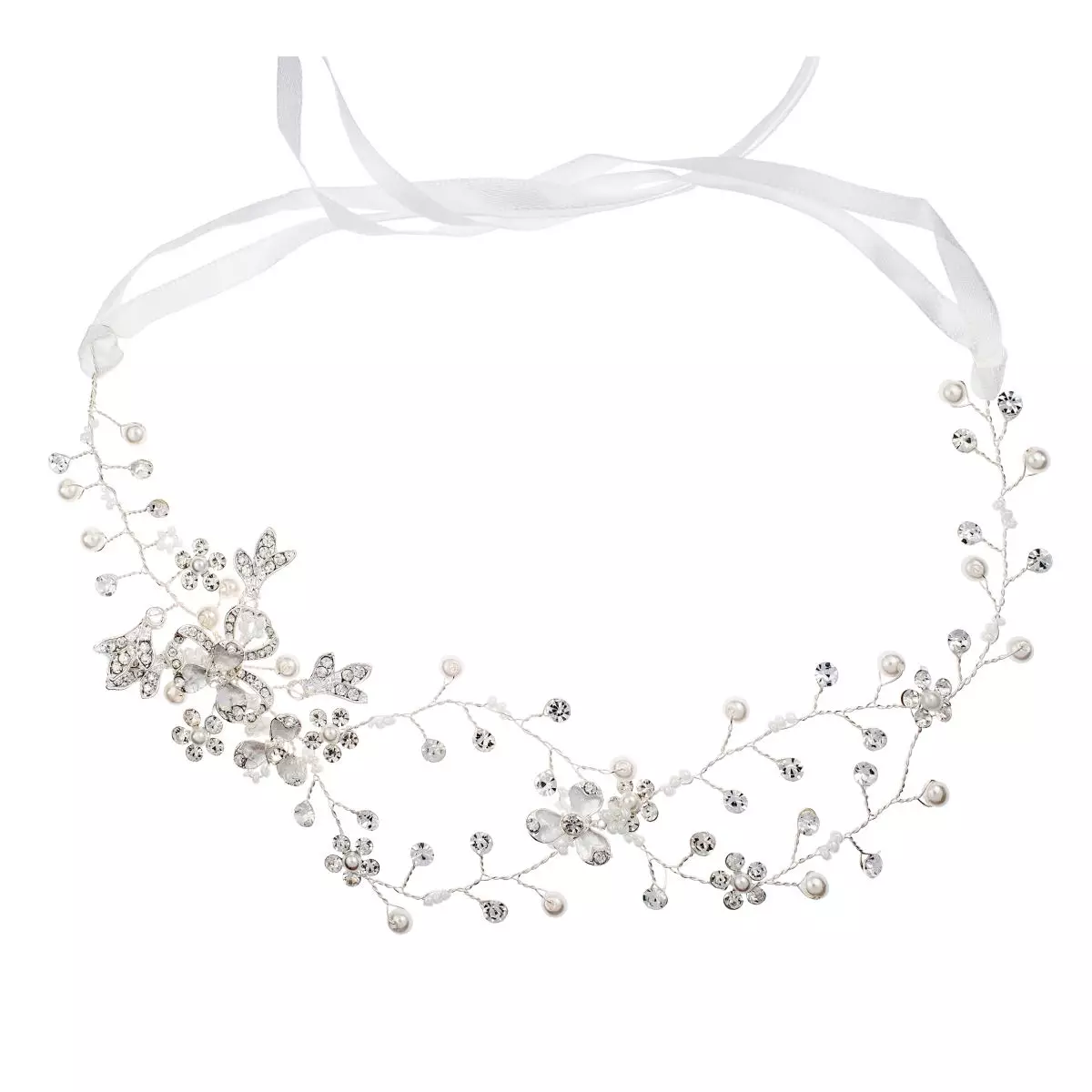 Der hübsche Kopfschmuck HS-J2683S mit silbernen Kristallblumen von G. Westerleigh kommt als Haardraht und ist mit Kristallen verziert, welche in aufwändiger Handarbeit eingearbeitet wurden. Der Haardraht verwandelt jede Frisur zu einer Traumfrisur. Dieser Kopfschmuck lässt sich ideal mit anderen Accessoires kombinieren und wirkt besonders schön mit einem Brautkleid, Abendkleid oder Kommunionkleid.