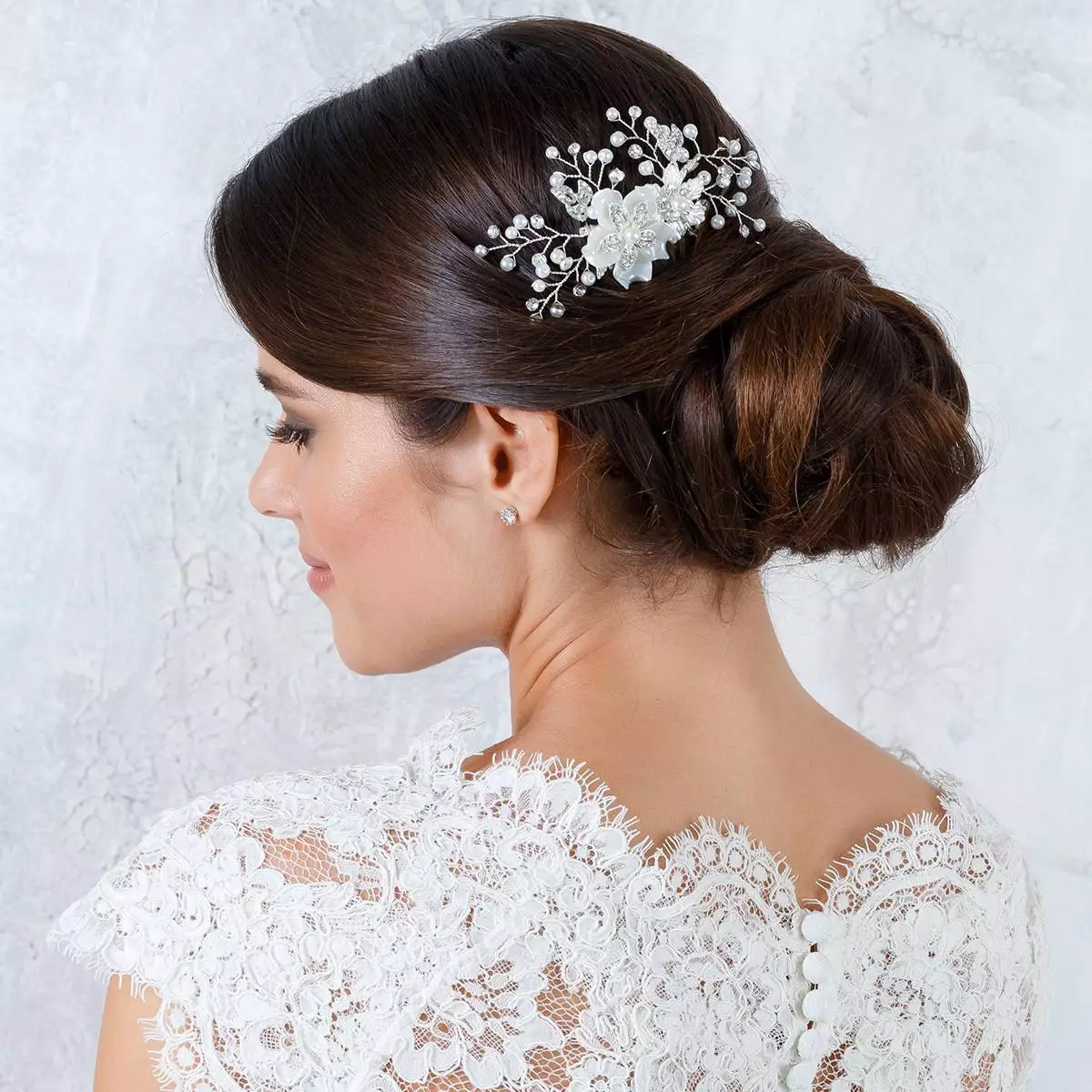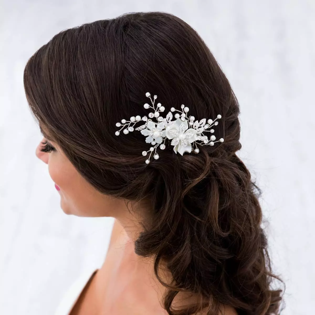 Der zarte Haarkamm FD1-11341 mit hochwertigen Strasssteinen von G. Westerleigh ist mit Kristallen und Perlen verziert, welche in aufwändiger Handarbeit eingearbeitet wurden. Der Kamm besteht aus nicht allergischen Materialien (nickel- und bleifrei) und ist mit Silber überzogen. Der Haarkamm sorgt für einen einzigartigen Haarlook. Dieser Kopfschmuck lässt sich ideal mit anderen Accessoires kombinieren und wirkt besonders schön mit einem Brautkleid oder Abendkleid.