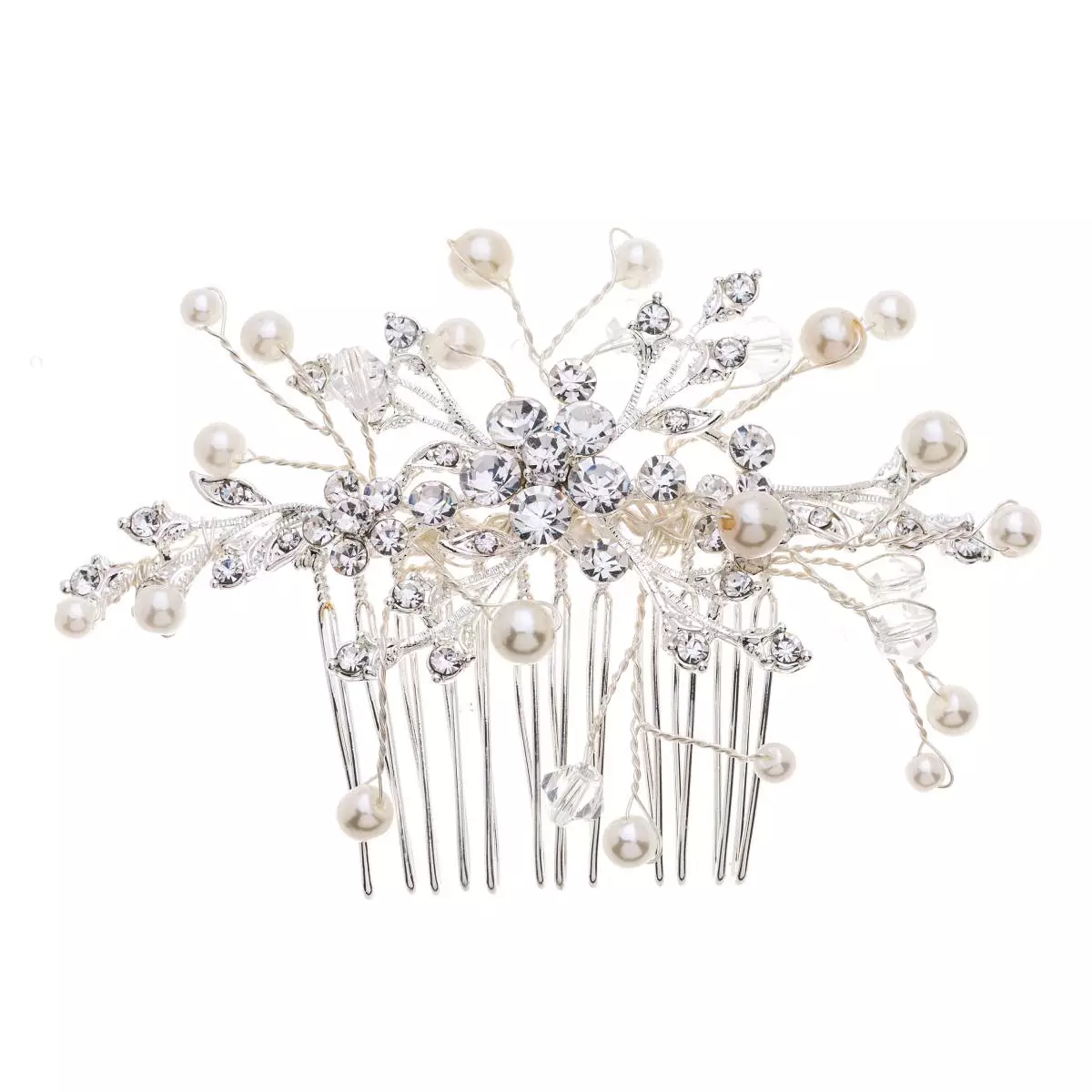 Der wunderschöne Haarkamm FD1-1719 mit kleinen Kristallen von G. Westerleigh ist mit Kristallen und Perlen verziert, welche in aufwändiger Handarbeit eingearbeitet wurden. Der Kamm besteht aus nicht allergischen Materialien (nickel- und bleifrei) und ist mit Silber überzogen. Der Haarkamm sorgt für einen einzigartigen Haarlook. Dieser Kopfschmuck lässt sich ideal mit anderen Accessoires kombinieren und wirkt besonders schön mit einem Brautkleid oder Abendkleid.