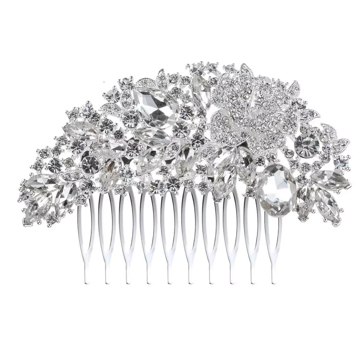 Der wunderschöne Haarkamm FS00153 mit vielen funkelnden Kristallsteinen von G. Westerleigh ist mit Kristallen verziert, welche in aufwändiger Handarbeit eingearbeitet wurden. Der Kamm besteht aus nicht allergischen Materialien (nickel- und bleifrei) und ist mit Silber überzogen. Der Haarkamm sorgt für einen einzigartigen Haarlook. Dieser Kopfschmuck lässt sich ideal mit anderen Accessoires kombinieren und wirkt besonders schön mit einem Brautkleid oder Abendkleid.