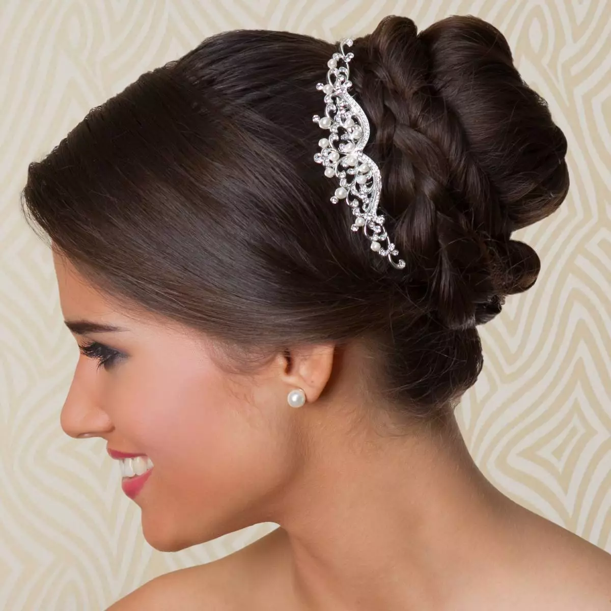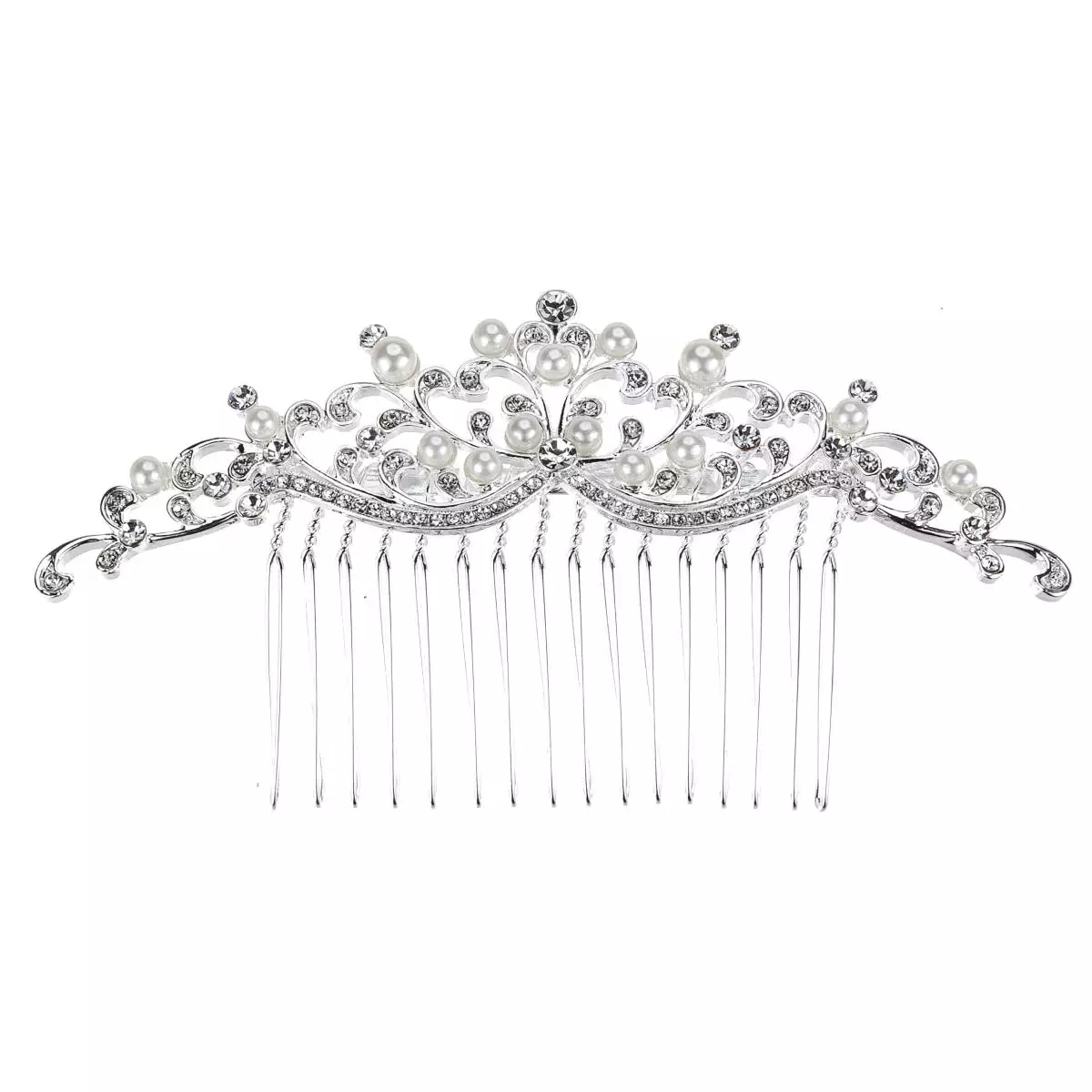 Der wunderschöne Haarkamm FS00216 mit kleinen Perlen verziert von G. Westerleigh ist mit Kristallen und Perlen verziert, welche in aufwändiger Handarbeit eingearbeitet wurden. Der Kamm besteht aus nicht allergischen Materialien (nickel- und bleifrei) und ist mit Silber überzogen. Der Haarkamm sorgt für einen einzigartigen Haarlook. Dieser Kopfschmuck lässt sich ideal mit anderen Accessoires kombinieren und wirkt besonders schön mit einem Brautkleid oder Abendkleid.
