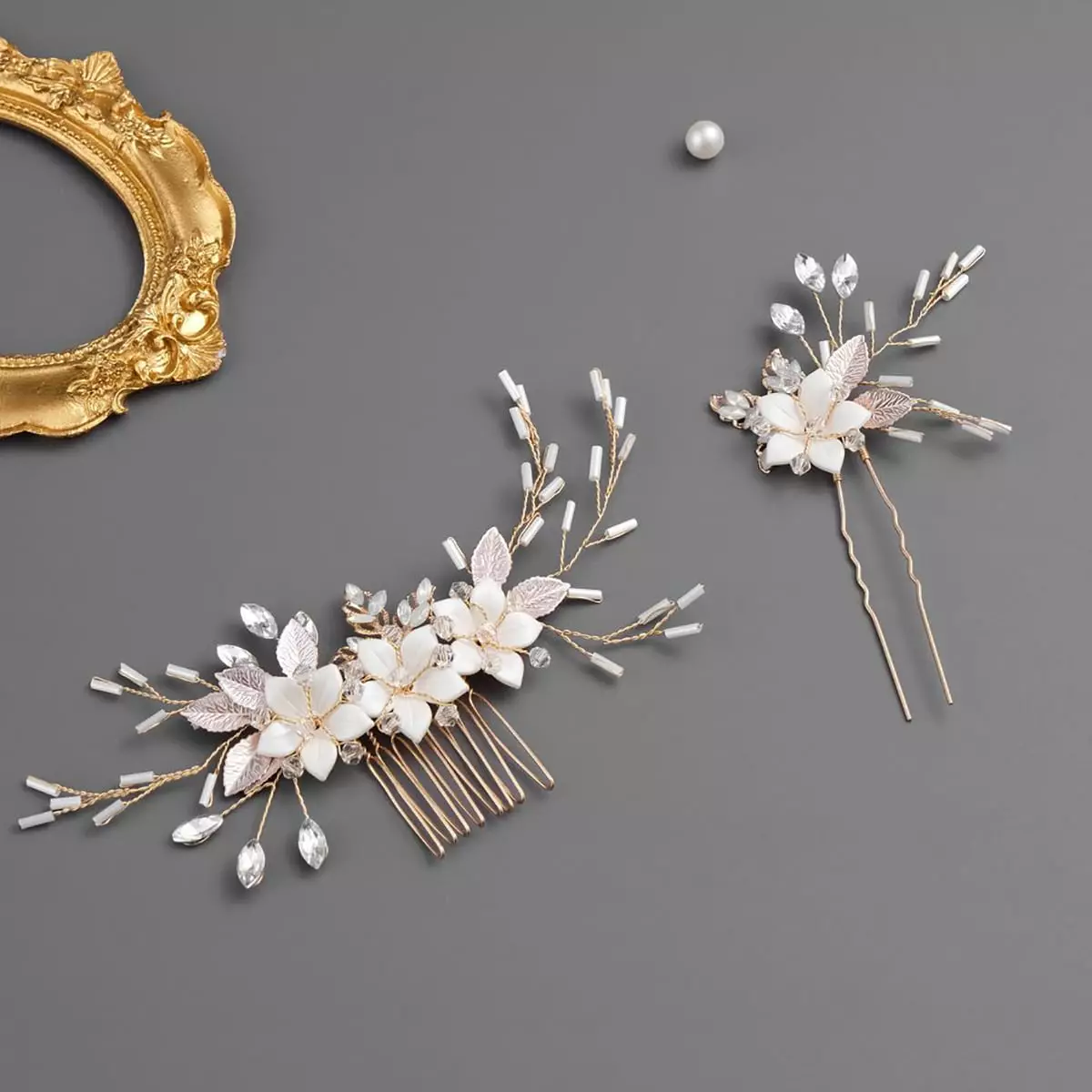 Wunderschöner Haarkamm HC6346 aus der aktuellen G. Westerleigh Kollektion. Verziert mit hochwertigen Strasssteinen, funkelnden Kristallen und creme Perlen, welche in aufwändiger Handarbeit eingearbeitet wurden. Der Kamm besteht aus nicht allergischen Materialien (nickel- und bleifrei) und ist mit Rosé Gold überzogen. Dieser Kopfschmuck lässt sich ideal mit anderen Accessoires kombinieren und wirkt besonders schön mit einem Brautkleid oder Abendkleid.