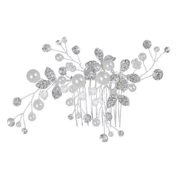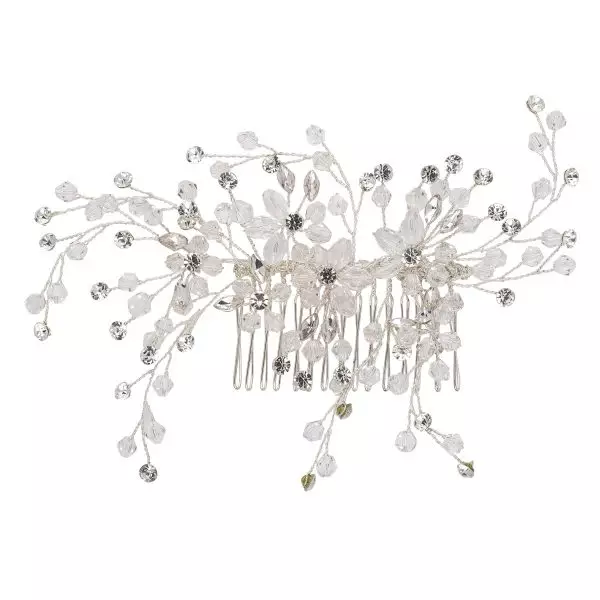Der schöne Haarkamm J1234 mit kleinen Kristallen und Strass verziert von G. Westerleigh ist mit Kristallen verziert, welche in aufwändiger Handarbeit eingearbeitet wurden. Der Kamm besteht aus nicht allergischen Materialien (nickel- und bleifrei) und ist mit Silber überzogen. Der Haarkamm sorgt für einen einzigartigen Haarlook. Dieser Kopfschmuck lässt sich ideal mit anderen Accessoires kombinieren und wirkt besonders schön mit einem Brautkleid oder Abendkleid.