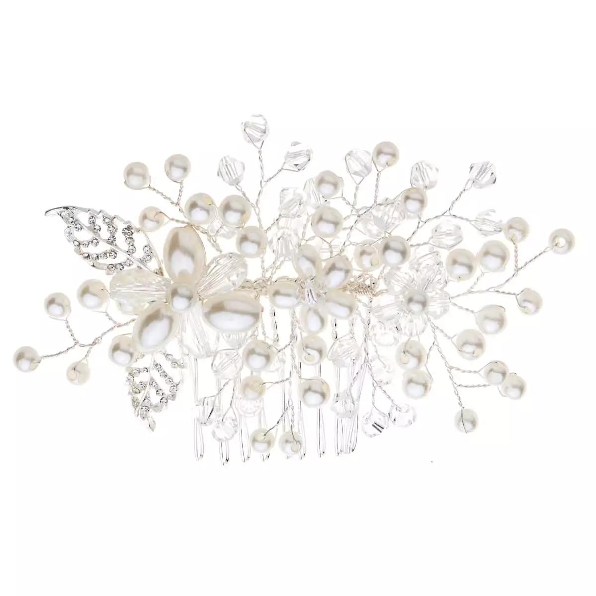 Der süße Haarkamm J4141 mit vielen Perlen in der Farbe Ivory von G. Westerleigh ist mit Kristallen und Perlen verziert, welche in aufwändiger Handarbeit eingearbeitet wurden. Der Kamm besteht aus nicht allergischen Materialien (nickel- und bleifrei) und ist mit Silber überzogen. Der Haarkamm sorgt für einen einzigartigen Haarlook. Dieser Kopfschmuck lässt sich ideal mit anderen Accessoires kombinieren und wirkt besonders schön mit einem Brautkleid oder Abendkleid.