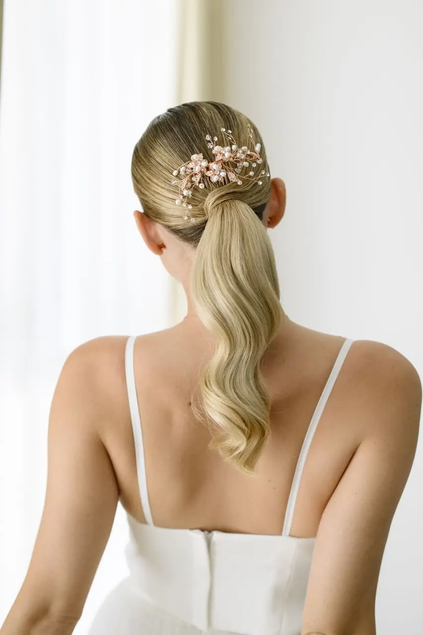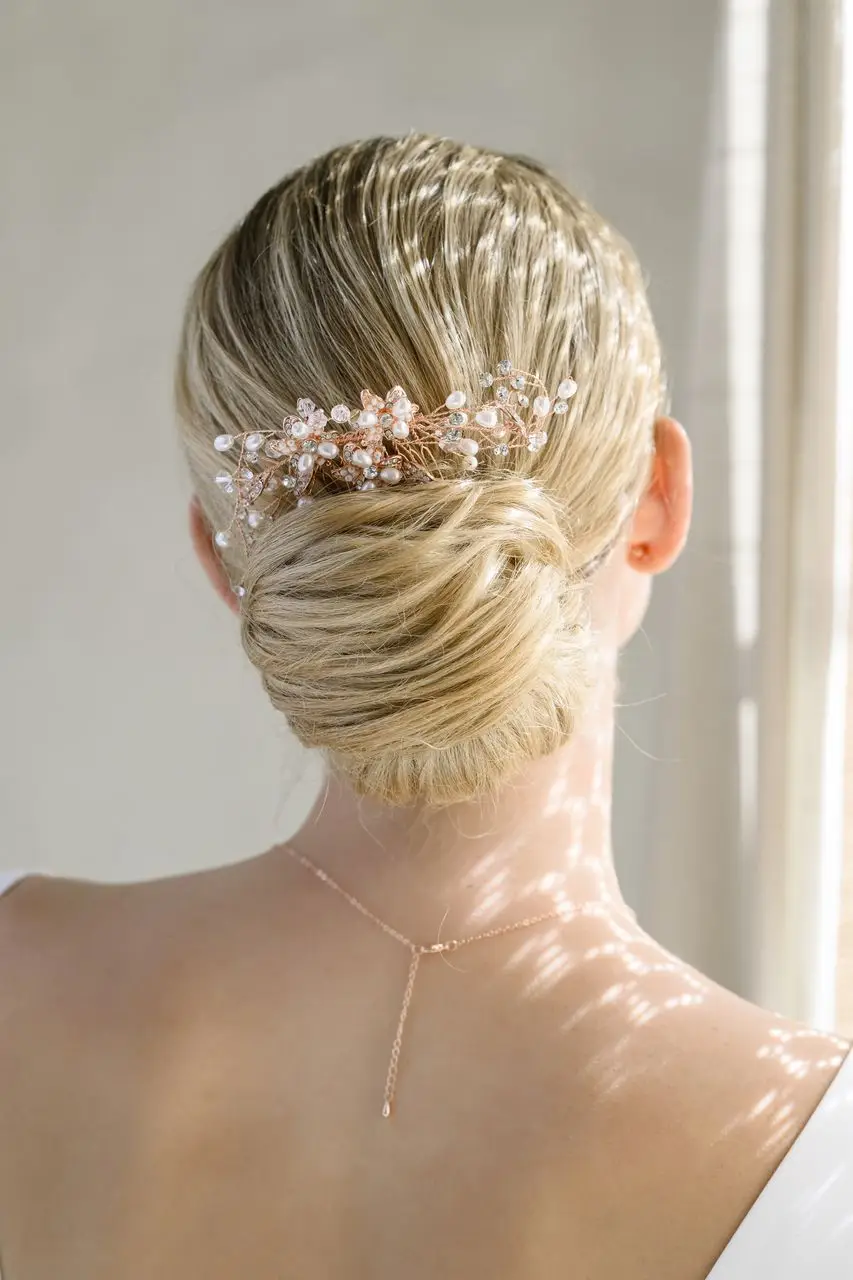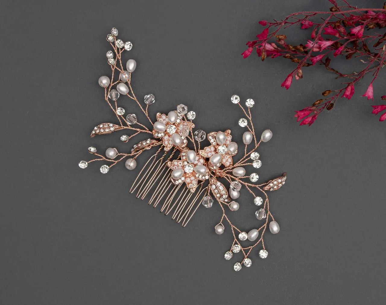Der wunderschöne Haarkamm in Rose Gold ist mit hochwertigen Strasssteinen und funkelnden Kristallen verziert. Der Haarkamm ist nickelfrei. Der Haarkamm ist nickelfrei.