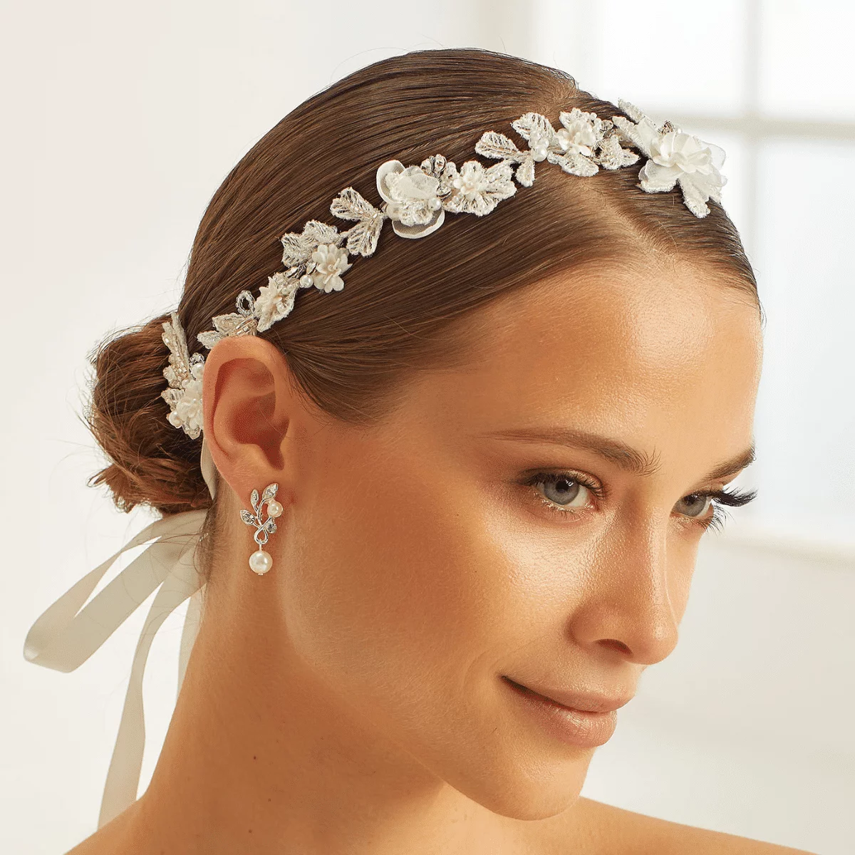 Dieser elegante Haardraht 389 von Avalia (Bianco Evento) ist mit Stoffblumen und Perlen dekoriert. Dieser Produkt ist mit langem Band hinten, hochwertig verarbeitet und ein wunderschönes Accessoire für dein Brautoutfit. Haarschmuck 389 ist in der Farbe Ivory erhältlich.