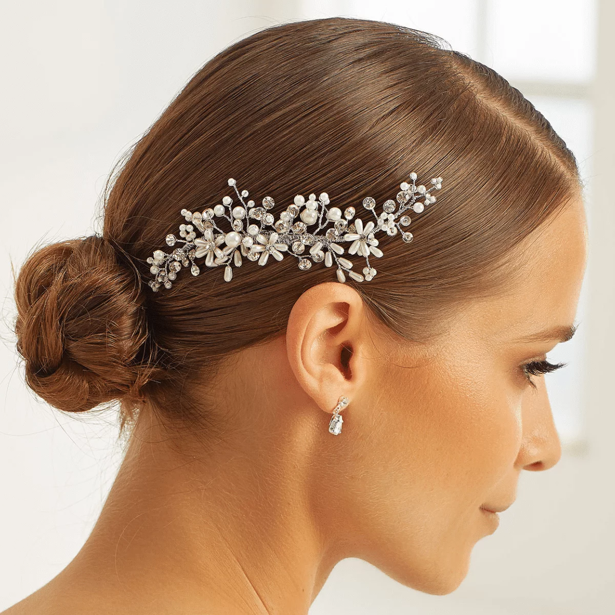 Dieser elegante Haarschmuck 393 von Avalia (Bianco Evento) ist mit Perlen und Kristallen dekoriert. Dieser Produkt ist hochwertig verarbeitet und ein wunderschönes Accessoire für dein Brautoutfit.
