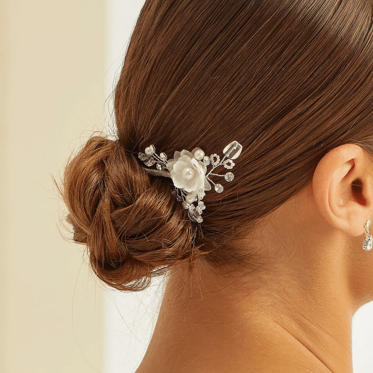 Dieser elegante Haarschmuck 641 von Avalia (Bianco Evento) ist mit Blumen, Perlen und Kristallen dekoriert. Dieser Produkt ist hochwertig verarbeitet und ein wunderschönes Accessoire für dein Brautoutfit.
