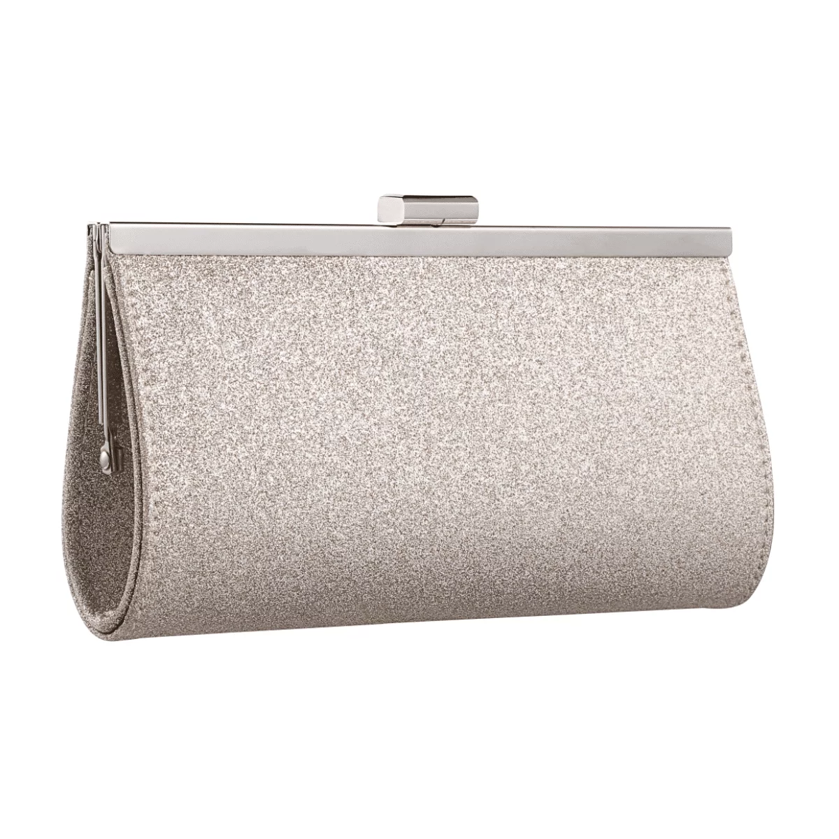 Schöne Handtasche mit Glitzern Vanessa Champagne-Glitter von White Lady. Diese Handtasche besteht aus champagnerfarbenem Glitter-Material und glänzt bei Lichteinfall. Ideal geeignet als Brauttasche oder Abend-Handtasche für Feierlichkeiten und Events. Der goldfarbene Schnappverschluss ist leicht zu handhaben und fest verschließbar, sodass die Tasche nicht selbstständig aufgehen kann. Passend zu der Handtasche Vanessa Champagne-Glitter empfehlen wir die Sneaker 937 von White Lady oder andere Schuhe aus Glitter-Material in Farbe Champagne oder Gold. Zu dieser Tasche passt ein schlichtes Kleid in der Farbe Ivory oder Weiß mit passendem goldenen Schmuck bzw. ein Abendkleid oder Brautkleid in der Farbe Gold oder Champagne.