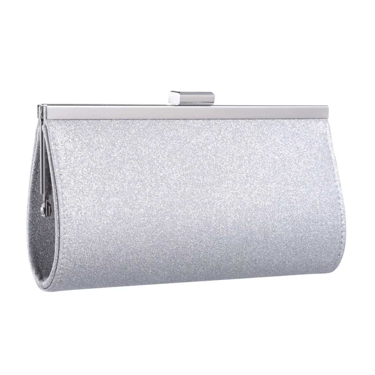 Schöne Handtasche mit Glitzern Vanessa Silber-Glitter von White Lady. Diese Handtasche besteht aus silberfarbenem Glitter-Material und glänzt bei Lichteinfall. Ideal geeignet als Brauttasche oder Abend-Handtasche für Feierlichkeiten und Events. Der goldfarbene Schnappverschluss ist leicht zu handhaben und fest verschließbar, sodass die Tasche nicht selbstständig aufgehen kann. Passend zu der Handtasche Vanessa Silber-Glitter empfehlen wir die Sneaker 937 von White Lady oder andere Schuhe aus Glitter-Material in Farbe Silber. Zu dieser Tasche passt ein schlichtes Kleid in der Farbe Ivory oder Weiß mit passendem silbernen Schmuck bzw. ein Abendkleid oder Brautkleid in der Farbe Silber.