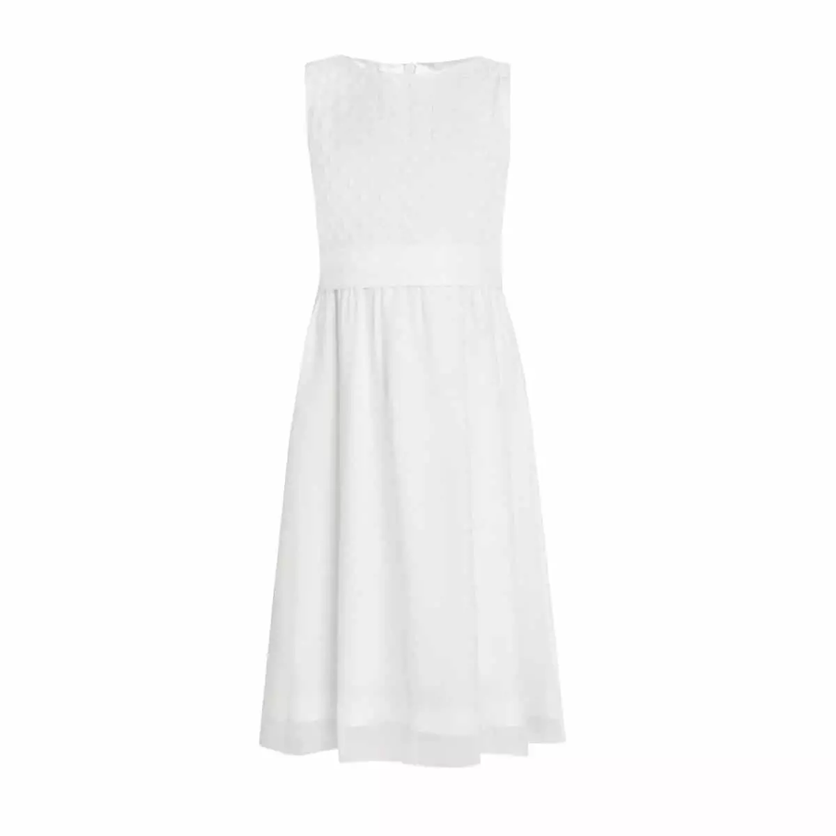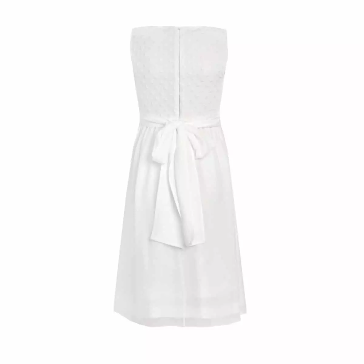 Das wunderschöne Kommunionkleid „Anna“ von Miolilou kommt in der Farbe Weiß. Das Oberteil besteht aus hochwertiger Spitze, die mit kleinen runden Blümchen verziert ist. Es handelt sich um ein edles aber trotzdem sehr schlichtes Kleid. Der restliche Stoff und das Futter dieses wunderschönen Kleidchens besteht aus 100% Viskose. Viskose ist ein atmungsaktives Naturprodukt. Das Kleid „Anna weiß kurz“ ist natürlich komplett durchgefüttert und besitzt einen Reißverschluss am Rücken. In der Taille wird das Kommunionkleid mit einem Gürtel verziert.