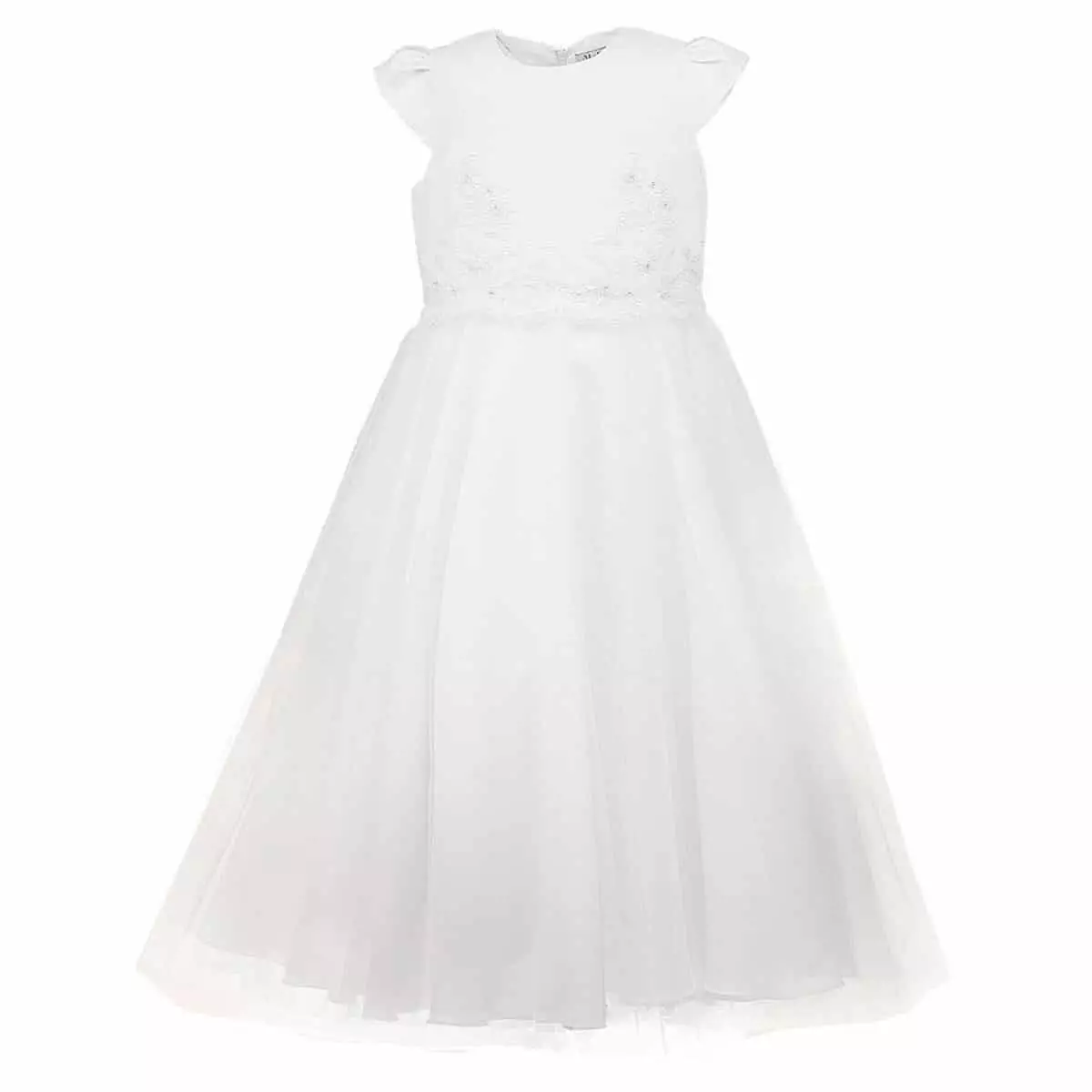 Ein wunderschönes langes Kommunionkleid Dalary DK-220 in der Farbe Weiß aus der Kollektion 2022. Das Kleid besteht aus hochwertigem Satin und ist an der Vorderseite mit Spitze verziert, die mit Perlen bestückt ist. Ein Reifrock aus Tüll vervollständigt dieses Mädchenkleid und kommt am besten beim Tanz zur Geltung. Es handelt sich um ein knöchellanges Modell mit einem leichten, stylischen Futter. Mit einer Schärpe an der Taille wird es ganz einfach gebunden und kann zusätzlich mit einem Reißverschluss am Rücken geöffnet werden. Zu dem Kleid DK-220 empfehlen wir passende Handschuhe und eine Handtasche in der Farbe Weiß. Es handelt sich um ein elegantes Kleid für die Kommunion oder Hochzeiten.