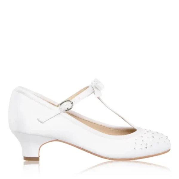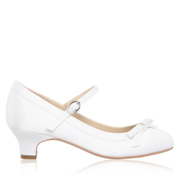 Die Beth Kommunionschuhe von The Perfect Bridal Company sind aus elfenbeinfarbenem Satin gefertigt und verfügen über eine Satinschleife am Knöchelriemen. Diese eleganten Absatzschuhe sind perfekt für den besonderen Anlass der Kommunion.