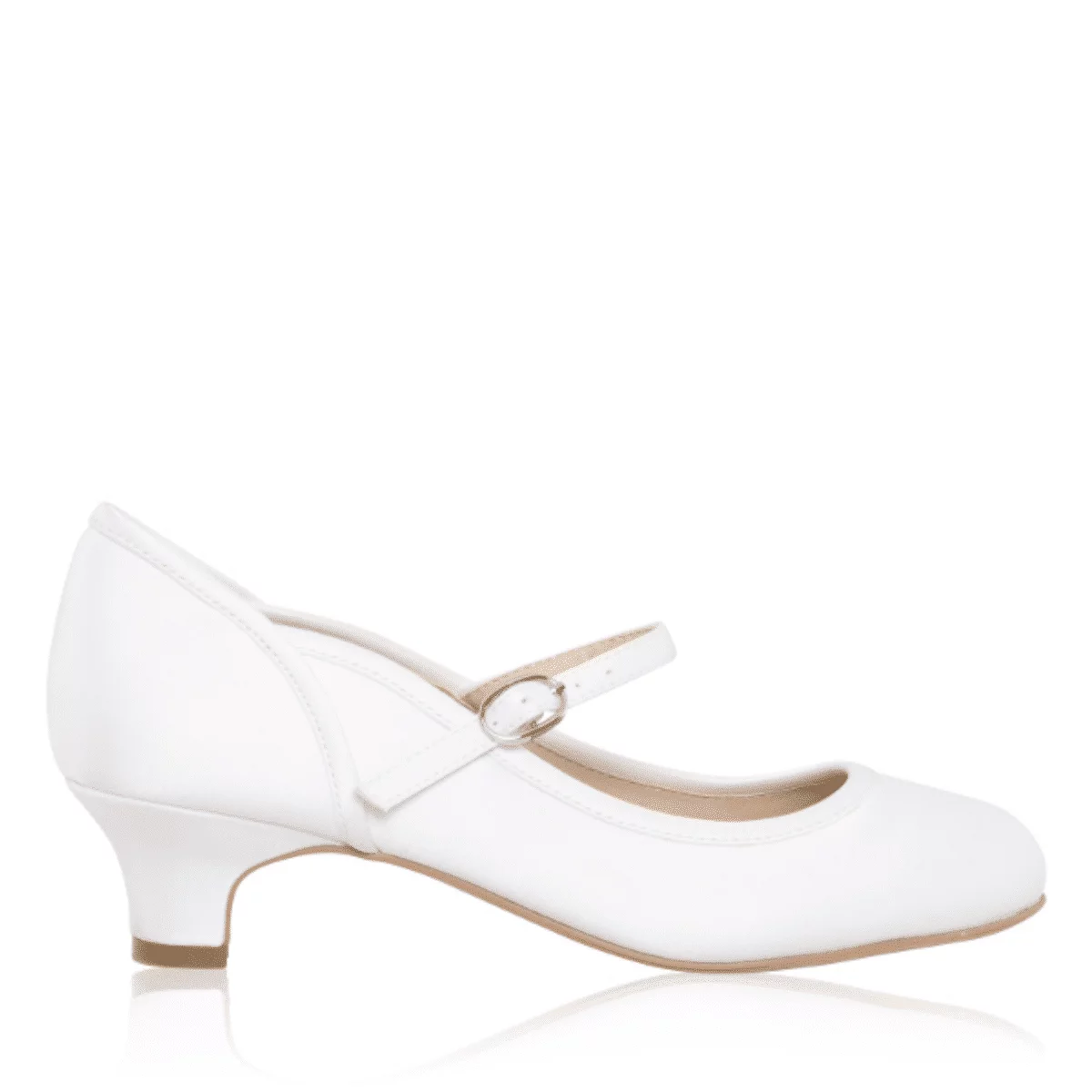 Die schönen Kommunionschuhe Lara von The Perfect Bridal Company aus weißem Satin mit einem kurvigen Jakobsmuschel-Detail mit passender Einfassung gefertigt. Die Kinderschuhe Lara haben einen kleinen Trichterabsatz und einen Knöchelriemen für einen sicheren Sitz. Dadurch sind sie sehr komfortabel zu tragen und wunderschön zugleich. Ideal für die Erstkommunion oder als Blumenmädchen-Schuhe. Deine Prinzessin wird sich in ihnen wohl fühlen und elegant aussehen!