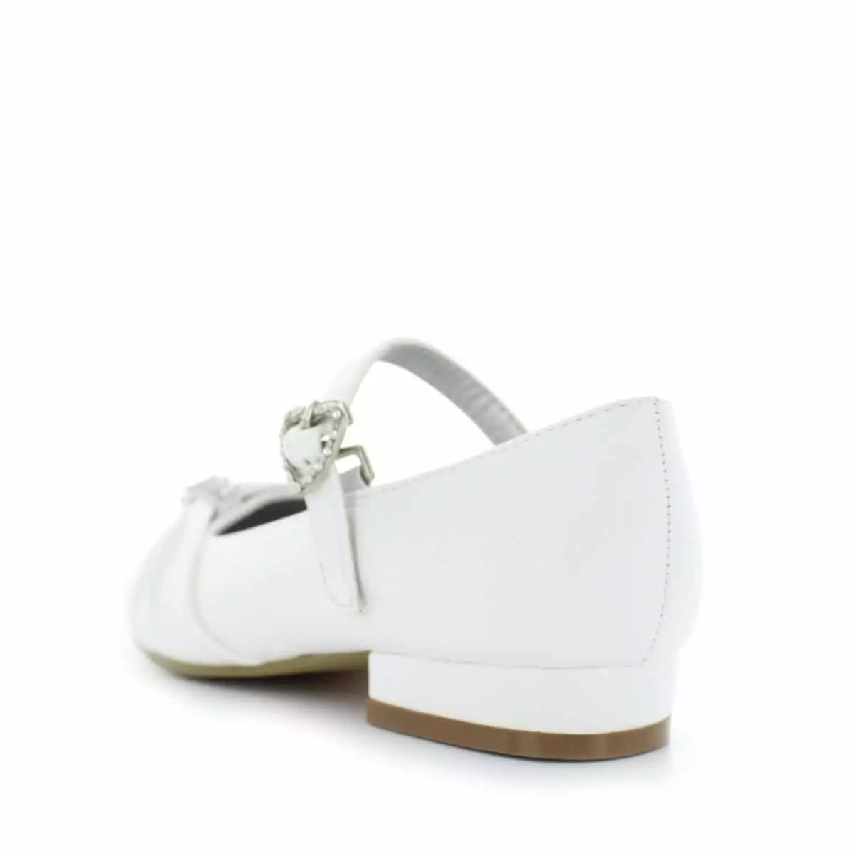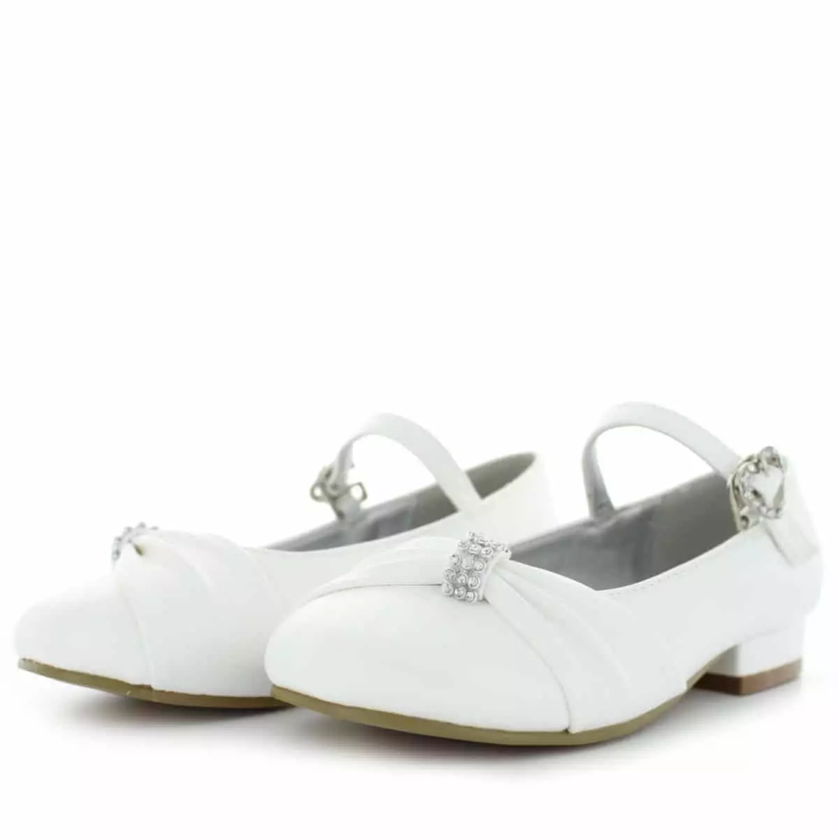 Elegante Kommunionschuhe „901“ von White Lady ist aus hochwertigem Leder in Farbe Weiß mit Kristallbrosche. Höchster Tragekomfort dank niedrigem Absatz und Schaumstoff-Innenfutter in der Fußsohle und Decksohle. Leicht verstellbarer Knöchelriemen mit stylischer Schnalle mit Kristallsteinen für ein bequemes Tragen.