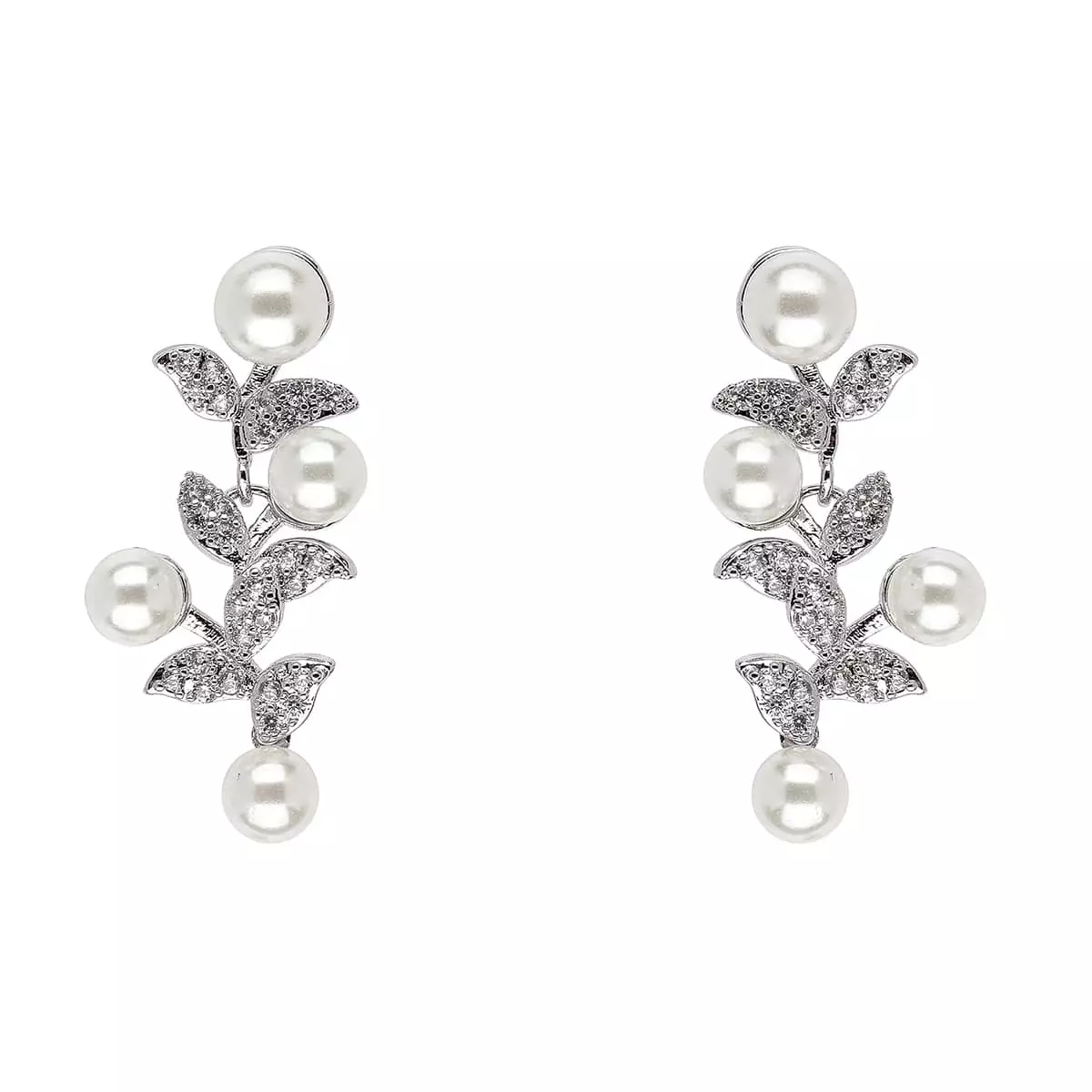 Die süßen Ohrringe EG1160 von G. Westerleigh sind mit Cubic Zirconia Kristallen und Perlen verziert, welche in aufwändiger Handarbeit eingearbeitet wurden. Die Ohrringe hübsch sind mit Silber bedeckt (nickel- und bleifrei) und daher auch für empfindliche Haut geeignet. Die Länge der Ohrstecker beträgt ca. 3,0 cm. Diese Ohrringe lassen sind ideal mit anderen Accessoires kombinieren und wirken besonders schön und elegant mit einem Braut- oder Abendkleid.