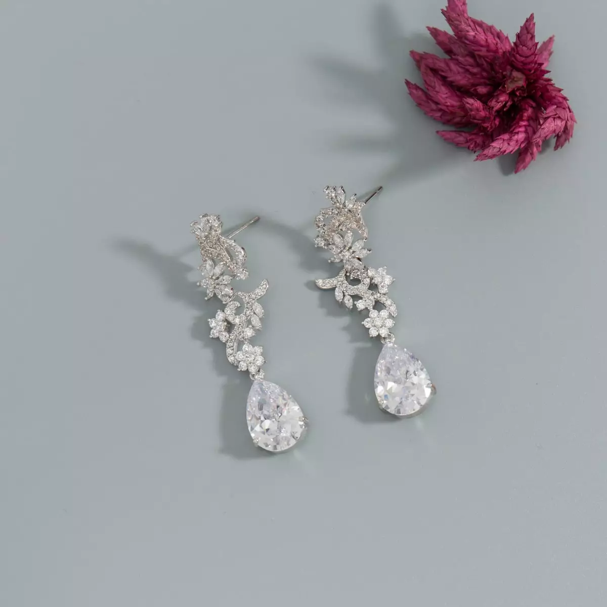 Die eleganten Ohrringe EG1263 von G. Westerleigh sind mit Cubic Zirconia Kristallen verziert, welche in aufwändiger Handarbeit eingearbeitet wurden. Die Ohrringe schönes Design sind mit Rhodium bedeckt (nickel- und bleifrei) und daher auch für empfindliche Haut geeignet. Die Länge der Ohrstecker beträgt ca. 4,5 cm. Diese Ohrringe lassen sind ideal mit anderen Accessoires kombinieren und wirken besonders schön und elegant mit einem Braut- oder Abendkleid.