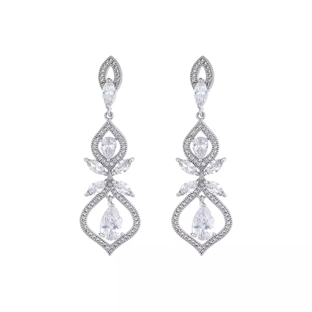 Die herrlichen Ohrringe EG1511 von G. Westerleigh sind mit Cubic Zirconia Kristallen verziert, welche in aufwändiger Handarbeit eingearbeitet wurden. Die Ohrringe mit Ornamenten sind mit Silber bedeckt (nickel- und bleifrei) und daher auch für empfindliche Haut geeignet. Die Länge der Ohrstecker beträgt ca. 5 cm. Diese Ohrringe lassen sind ideal mit anderen Accessoires kombinieren und wirken besonders schön und elegant mit einem Braut- oder Abendkleid.