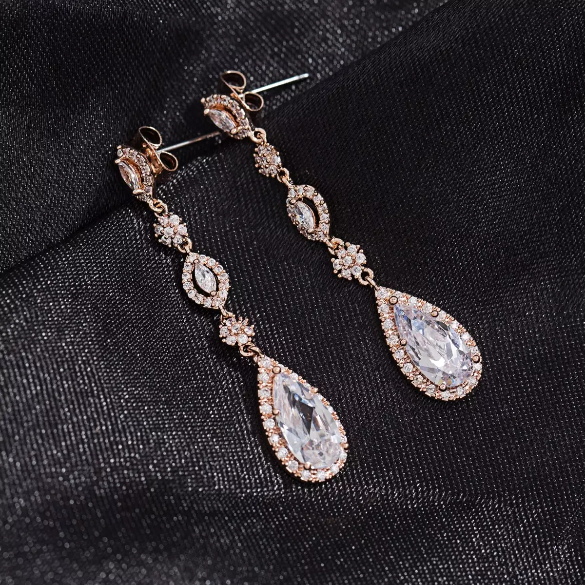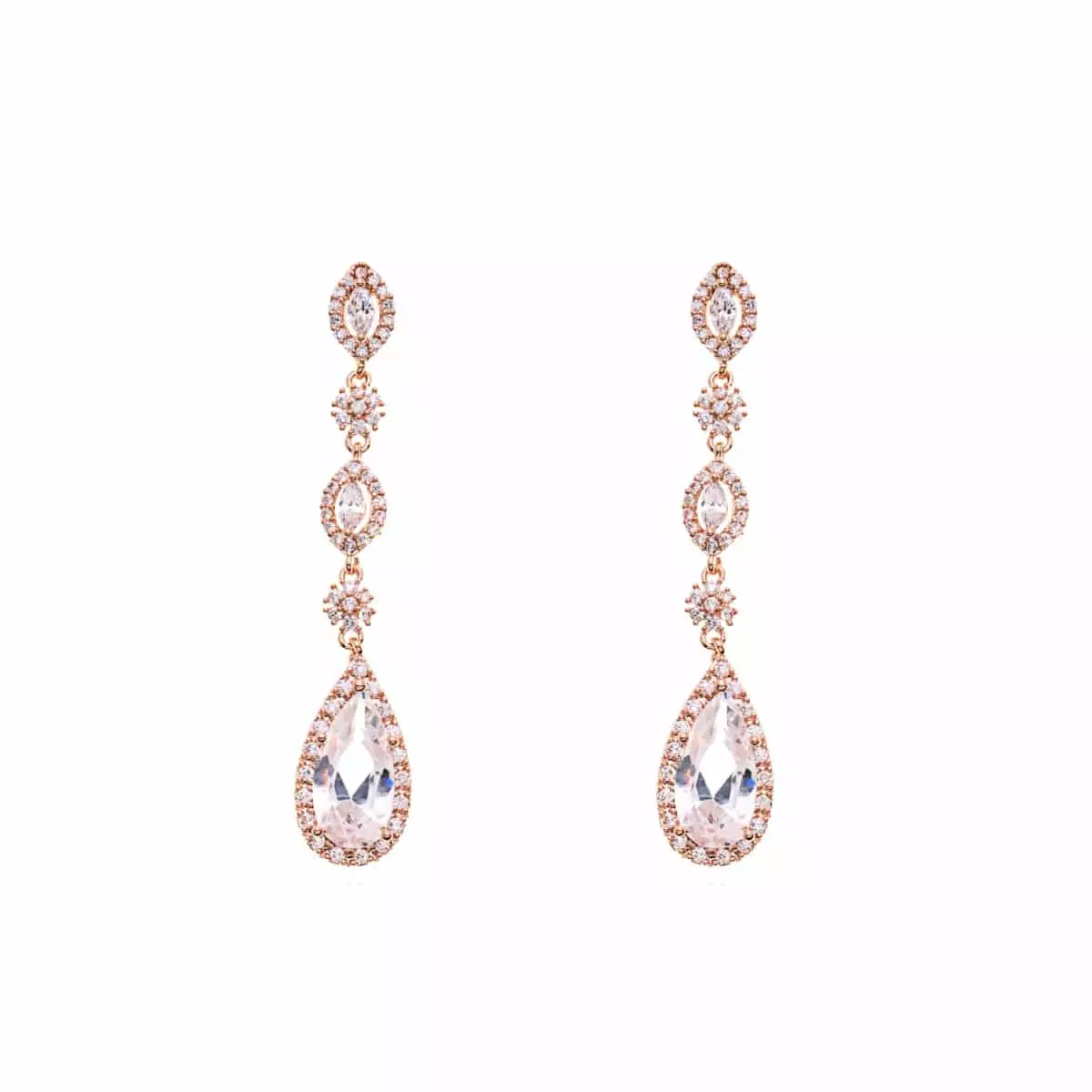Die wunderschönen Ohrringe EG4177 von G. Westerleigh sind mit Cubic Zirconia Kristallen verziert, welche in aufwändiger Handarbeit eingearbeitet wurden. Die Ohrringe funkelnd sind mit Rosé Gold bedeckt (nickel- und bleifrei) und daher auch für empfindliche Haut geeignet. Die Länge der Ohrstecker beträgt ca. 4,6 cm. Diese Ohrringe lassen sind ideal mit anderen Accessoires kombinieren und wirken besonders schön und elegant mit einem Braut- oder Abendkleid.
