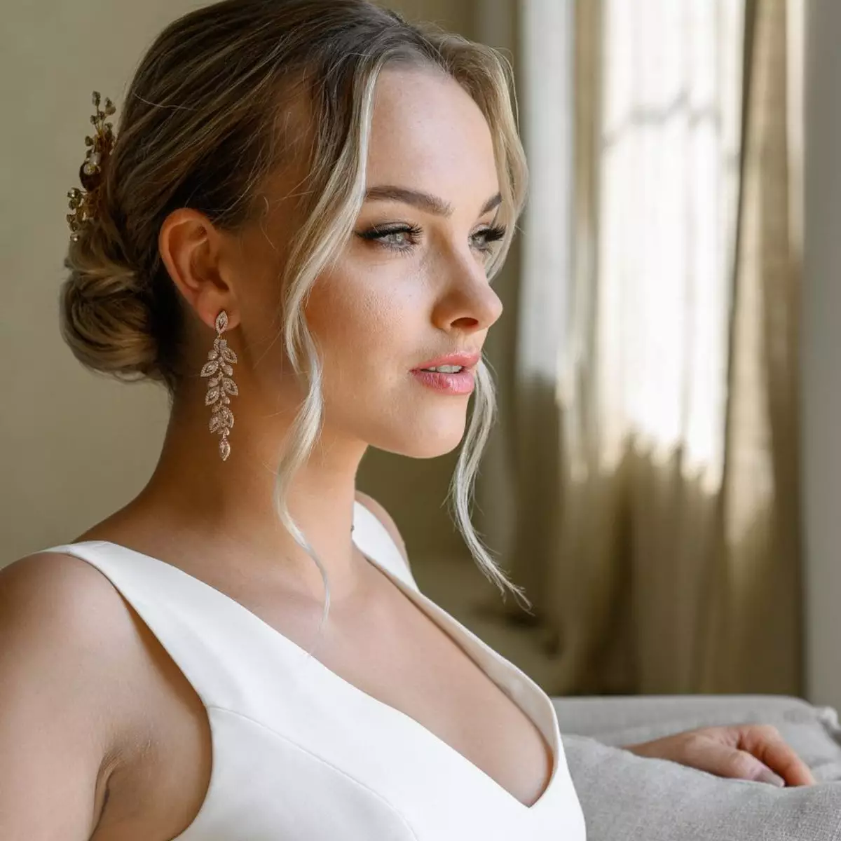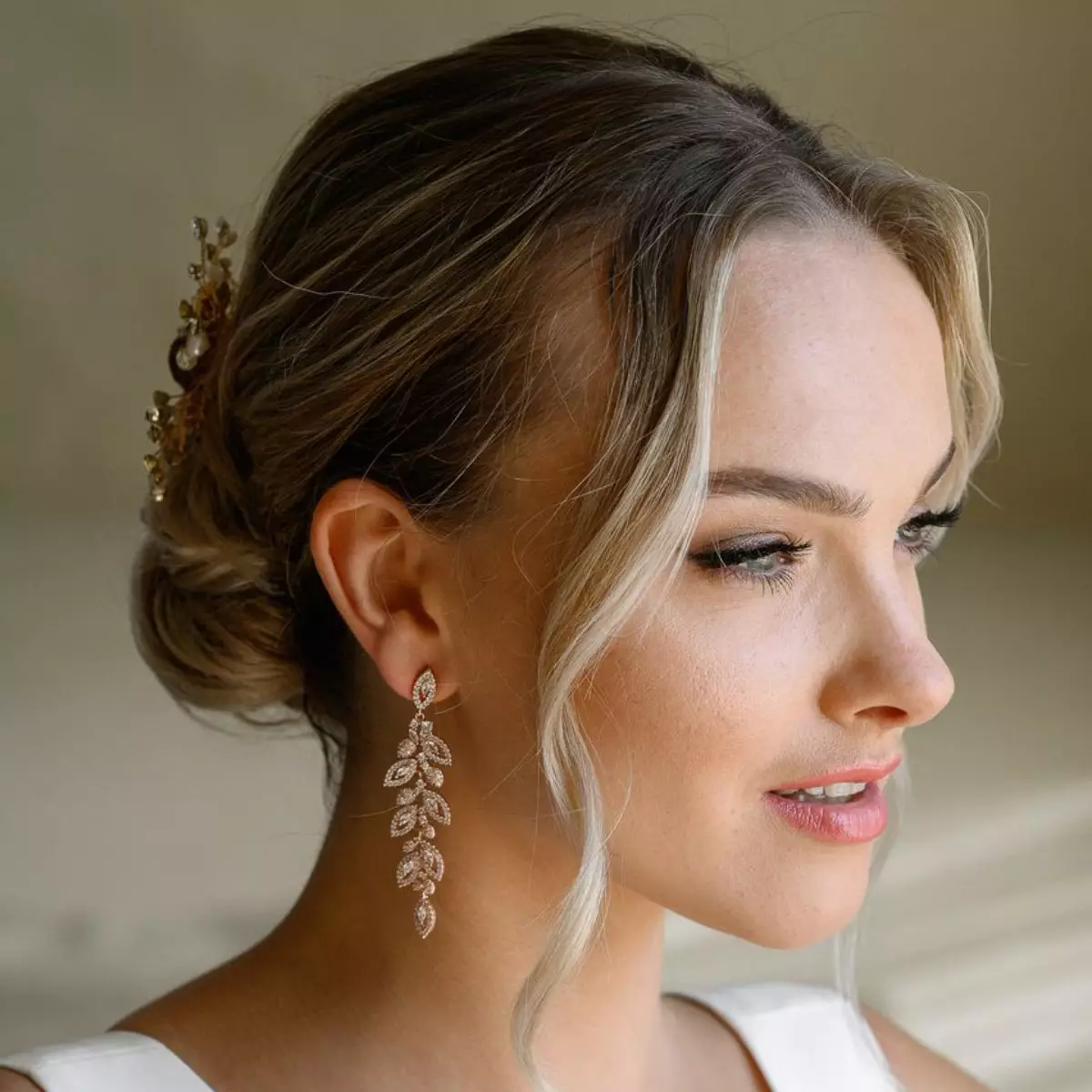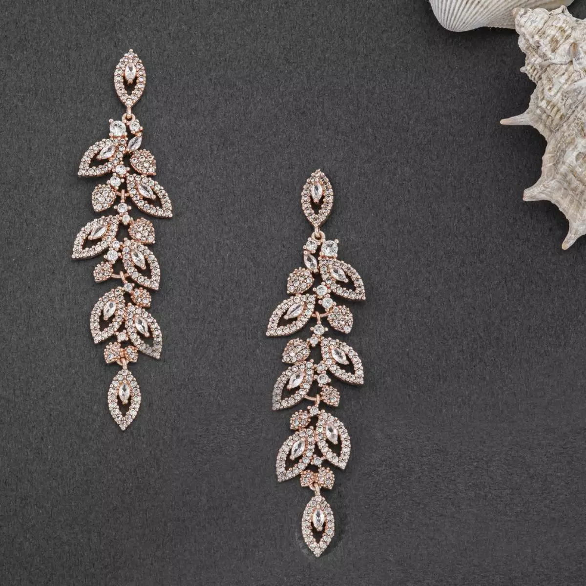 Wunderschöne Statement-Ohrringe ER023RG in einem Vintage-Look aus der Kollektion 2023 von G. Westerleigh. Die Kombination aus Roségold-Finish und vielen kleinen Cubic Zirkonia Kristallen macht diese Ohrringe zum Highlight in jedem Look! Ganz egal ob als glamouröser Schmuck für besondere Anlässe oder als hochwertiger Brautschmuck. Die funkelnden Kristallsteine wurden in aufwändiger Handarbeit eingearbeitet und bieten eine erstklassige Qualität. Dieses Modell ist mit Roségold bedeckt (nickel- und bleifrei) und daher auch für empfindliche Haut geeignet. Passen ideal zu einem eher schlichten Kleid und können mit einem Diadem in der Farbe Roségold getragen werden.