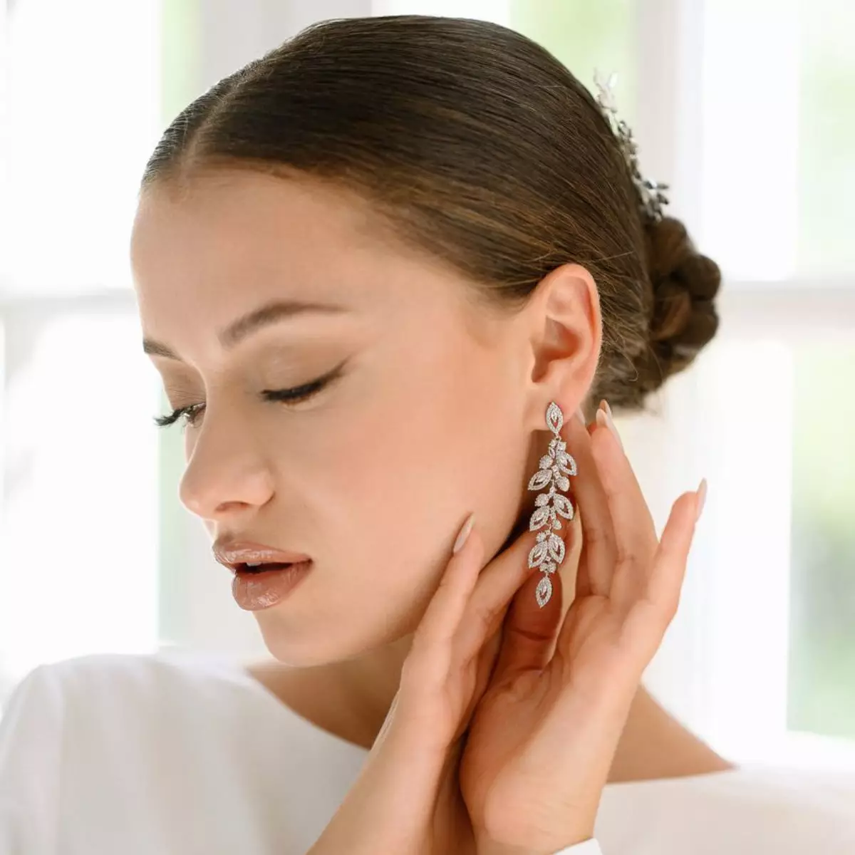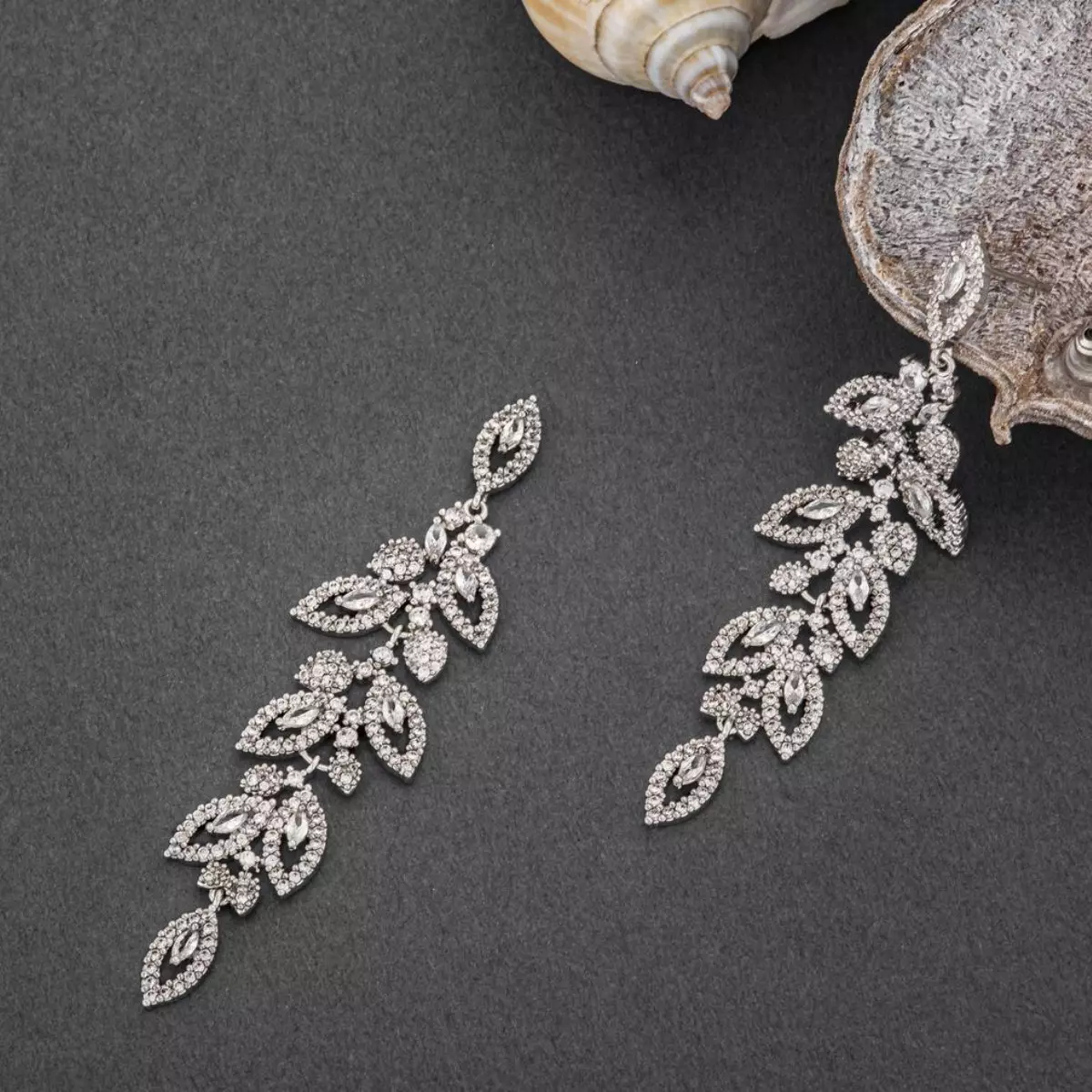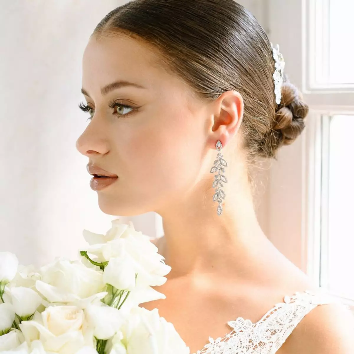 Die eleganten Statement-Ohrringe ER023S aus der Kollektion 2023 von G. Westerleigh kommen in einem trendigen Vintage-Look. Die Ohrhänger in der Farbe Silber sind mit vielen kleinen Cubic Zirkonia Kristallen verziert, die in aufwändiger Handarbeit eingearbeitet wurden. Dieses Modell ist rhodiniert (nickel- und bleifrei) und daher auch für empfindliche Haut geeignet. Die ideale Wahl für die Braut mit einem eher schlichten Kleid, da diese Ohrringe das Highlight in jedem Brautlook bieten. Auch bestens als Schmuck für besondere Anlässe geeignet.