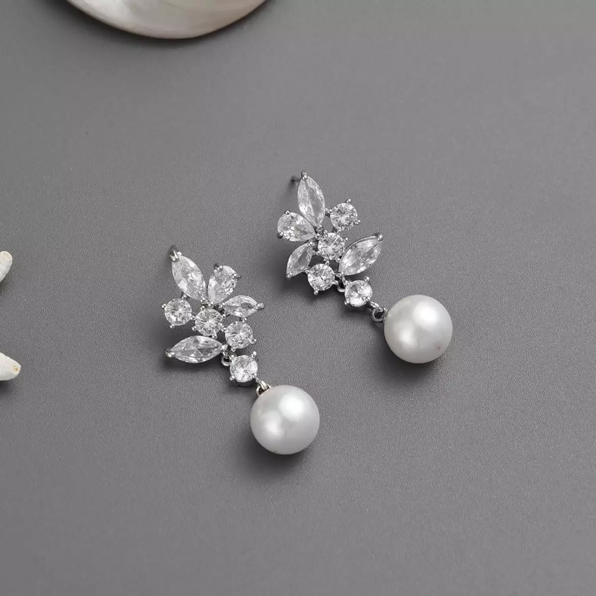 Elegante Ohrringe ER4149 aus der aktuellen G. Westerleigh Kollektion. Mit Cubic Zirconia Kristallen und creme Perlen verziert, welche in aufwändiger Handarbeit eingearbeitet wurden. Die Ohrringe sind mit Rhodium bedeckt (nickel- und bleifrei) und daher auch für empfindliche Haut geeignet. Die Länge der Ohrstecker beträgt ca. 4 cm. Diese Ohrringe lassen sind ideal mit dem Armband H0795S kombinieren.