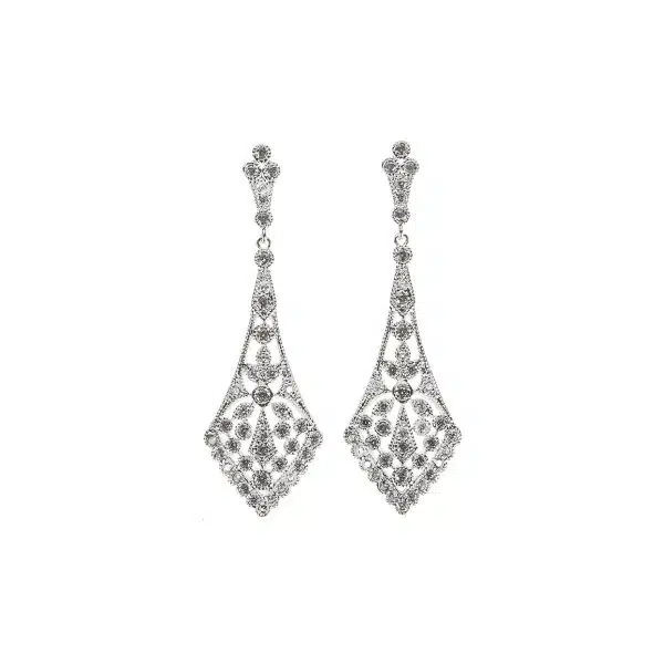 Die eleganten Ohrringe WFE0109A von G. Westerleigh sind mit Cubic Zirconia Kristallen verziert, welche in aufwändiger Handarbeit eingearbeitet wurden. Die Ohrringe versilbert sind mit Silber bedeckt (nickel- und bleifrei) und daher auch für empfindliche Haut geeignet. Die Länge der Ohrstecker beträgt ca. 3,2 cm. Diese Ohrringe lassen sind ideal mit anderen Accessoires kombinieren und wirken besonders schön und elegant mit einem Braut- oder Abendkleid.