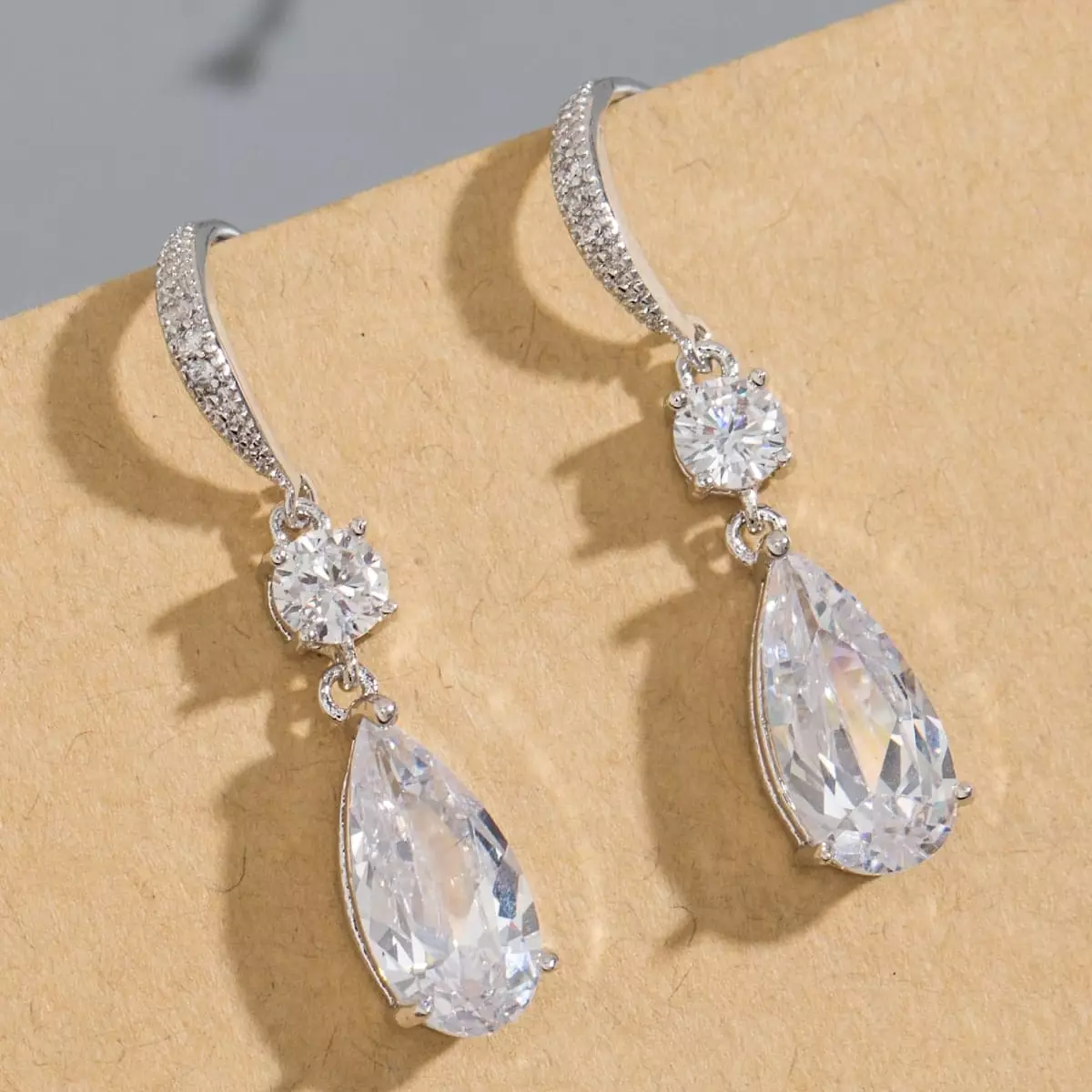 Die eleganten Ohrringe WFE0109A von G. Westerleigh sind mit Cubic Zirconia Kristallen verziert, welche in aufwändiger Handarbeit eingearbeitet wurden. Die Ohrringe versilbert sind mit Silber bedeckt (nickel- und bleifrei) und daher auch für empfindliche Haut geeignet. Die Länge der Ohrstecker beträgt ca. 3,2 cm. Diese Ohrringe lassen sind ideal mit anderen Accessoires kombinieren und wirken besonders schön und elegant mit einem Braut- oder Abendkleid.