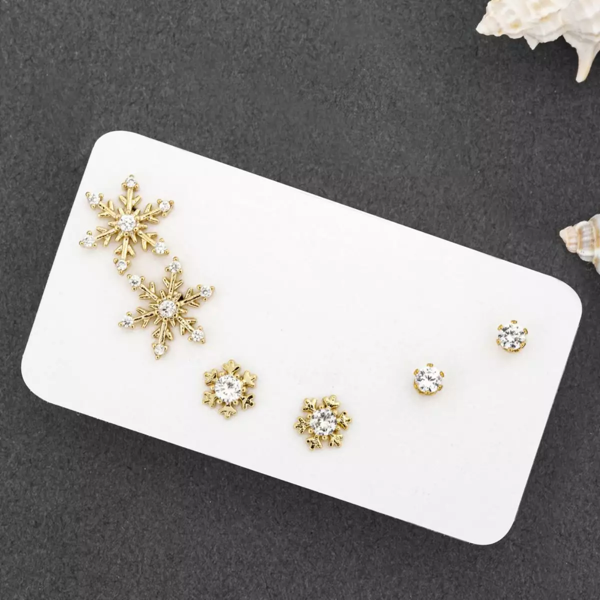 Ein modisches Ohrringe-Set ER0131 aus der Kollektion 2023! Bestehend aus drei verschiedenen Ohrsteckern in der Farbe Gold, die mit kleinen funkelnden Kristallen verziert sind. Kombiniere die einzelnen Ohrringe frei nach deinem Wunsch. Geeignet als eleganter Schmuck für die Hochzeit, für besondere Anlässe oder auch für den Alltag. Das Metallteil ist vergoldet (nickel- und bleifrei) und daher auch für empfindliche Haut geeignet.