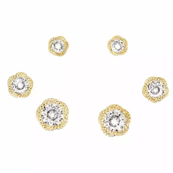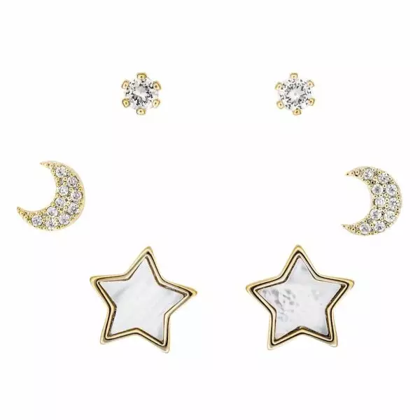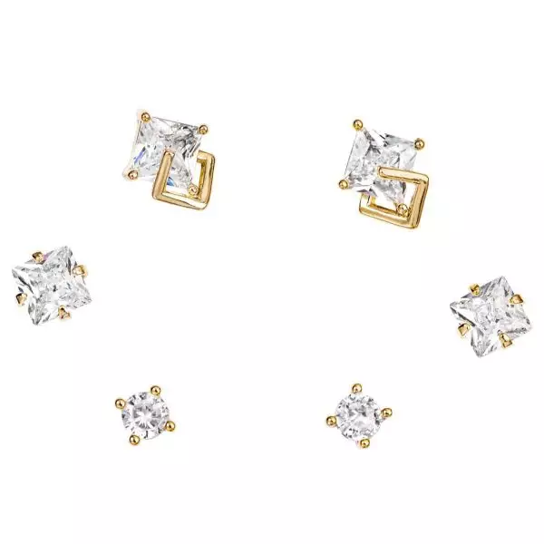 Ein elegantes Ohrringe-Set ER63266 aus der Kollektion 2023 von G. Westerleigh! Bestehend aus drei verschiedenen Ohrsteckern in der Farbe Gold, die mit funkelnden Kristallen verziert sind. Kombiniere die einzelnen Ohrringe frei nach deinem Wunsch. Geeignet als eleganter Schmuck für die Hochzeit, für besondere Anlässe oder auch für den Alltag. Das Metallteil ist vergoldet (nickel- und bleifrei) und daher auch für empfindliche Haut geeignet.
