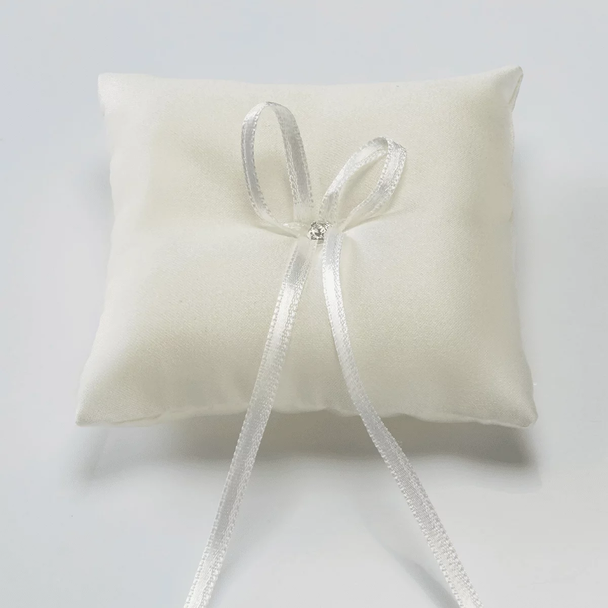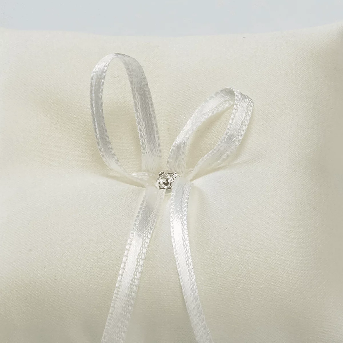 Elegantes Ringkissen K4 von Avalia (Bianco Evento) aus hochwertigem Satin mit einem Swarovski Kristall handverziert. Das Kissen kommt wahlweise in den Farben Ivory (Elfenbeinfarbe) und Weiß und ist mit einem zarten Swarovski Kristallstein verziert. Die Ringe werden mit einem Band aus Satin befestigt, welches am Kissen eingenäht ist. Sorgfältig entworfen und hergestellt in der Europäischen Union.