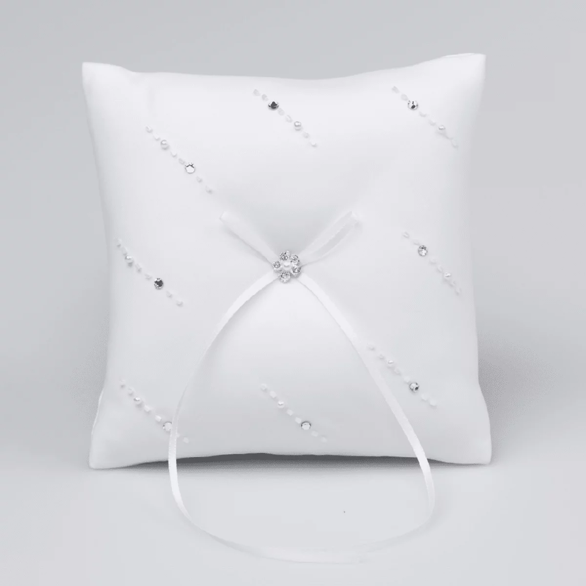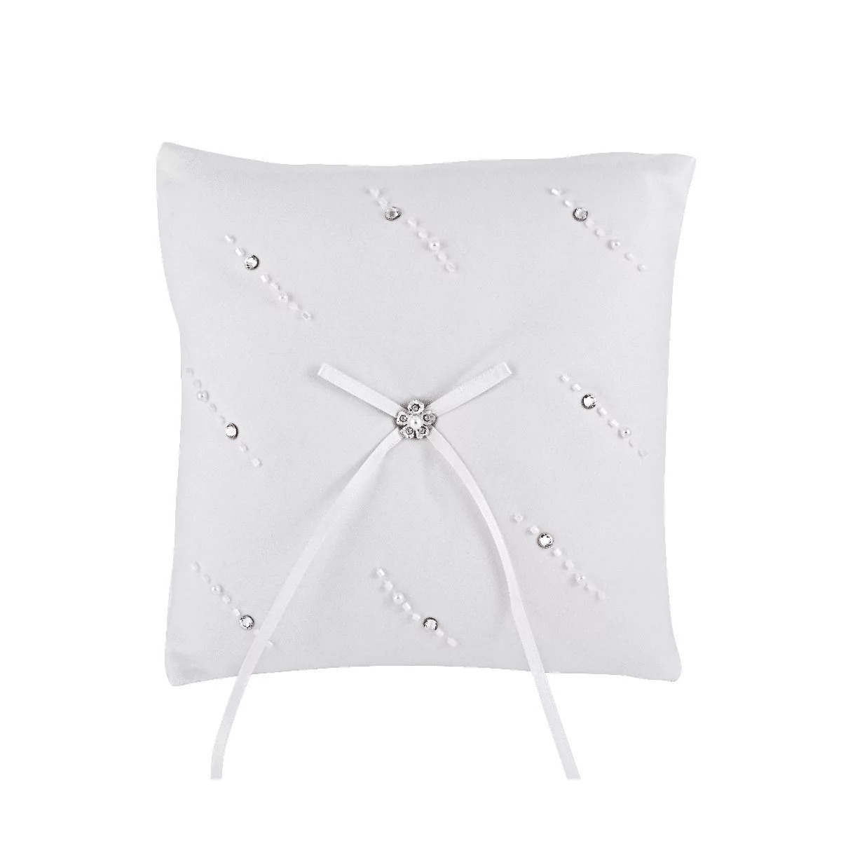 Das wunderschöne Ringkissen R-0364 von G. Westerleigh ist aus hochwertigem Satin hergestellt und kommt wahlweise in den Farben Weiß und Ivory (Elfenbeinfarbe). Die Ringe werden mit einem Band aus Satin befestigt, welches am Kissen eingenäht ist. Kristallsteine und kleine Perlen schmücken das Ringkissen und sorgen gleichzeitig für Eleganz. Das Accessoire wird in einem eleganten Geschenketui ausgeliefert.