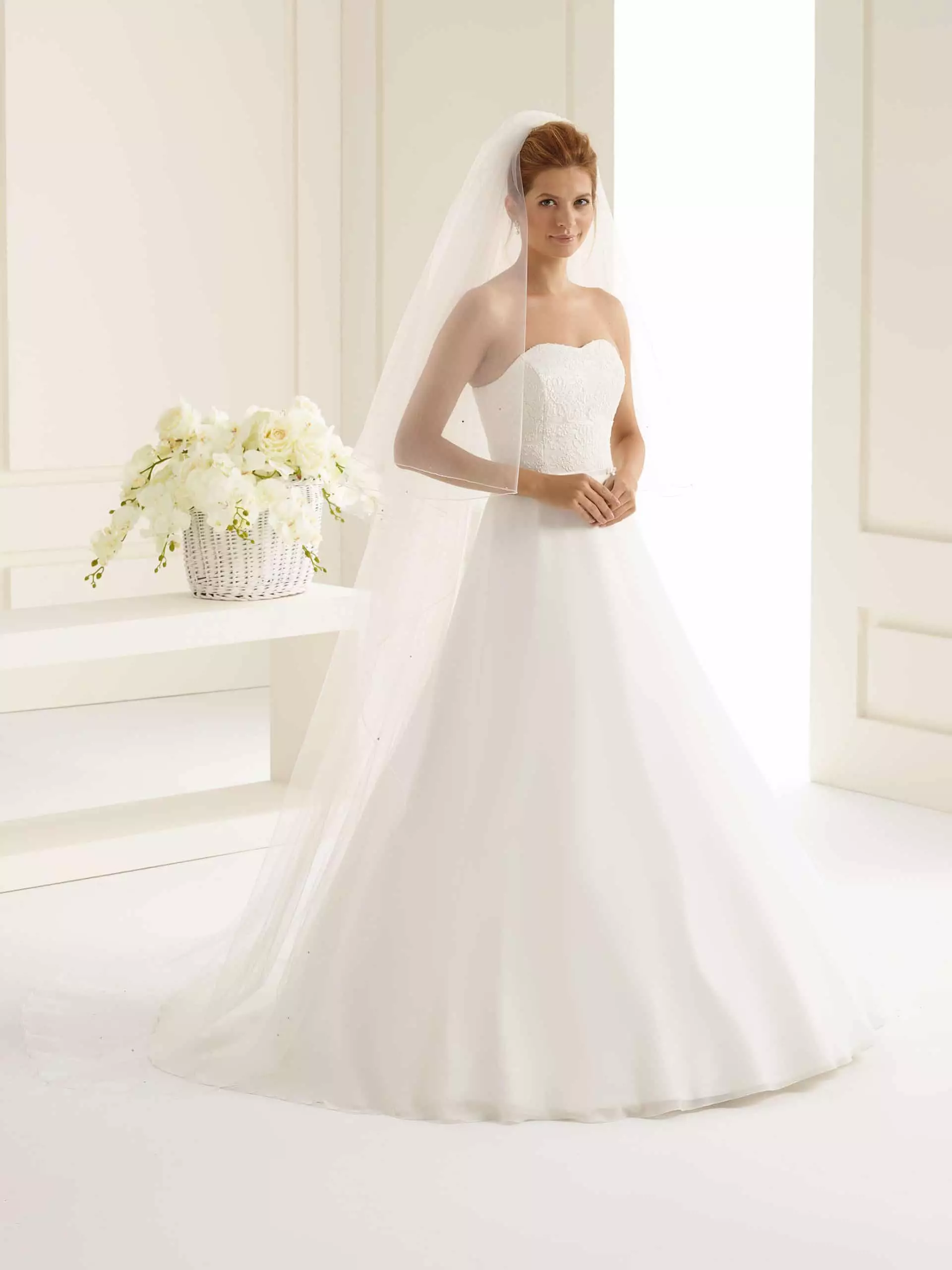 Exklusive Accessoires für die Braut mit hoher Qualität online kaufen. Wunderschöner Schleier S126 mit Kurbelkante, handverziert mit 80 Swarovski Kristallen. Der Schleier S126 ist in den Farben Weiß und Creme (Ivory) lieferbar und passt hervorragend zu einem Brautkleid in der Farbe Weiß oder Ivory. Es handelt sich um ein klassisches Modell Diamond Tüll in 230 cm / 90 cm Länge. Dieser Schleier wird am Kamm streckfertig geliefert. Hohe Qualität, sorgfältig entworfen und produziert in der Europäischen Union.