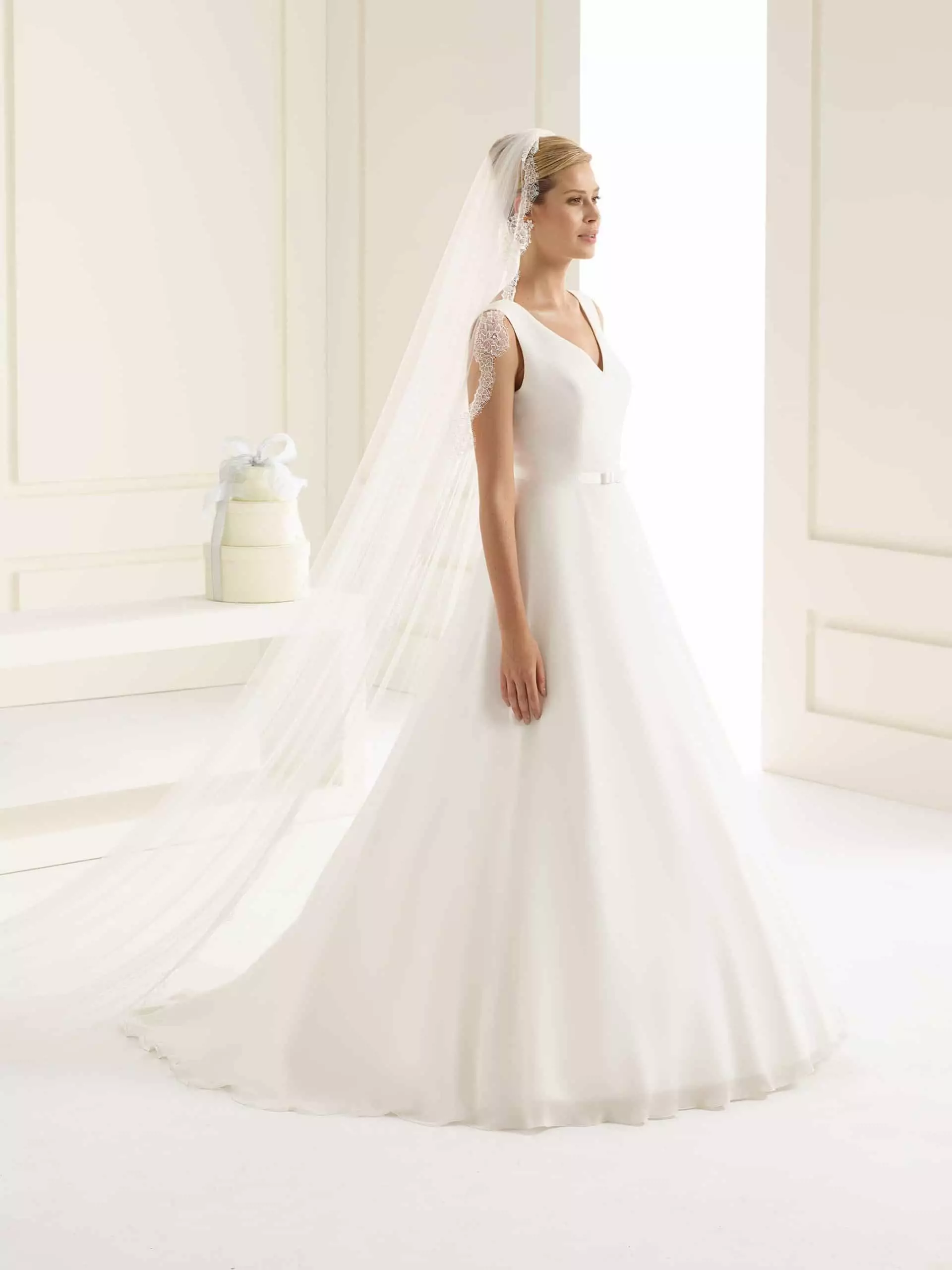 Exklusive Accessoires für die Braut mit hoher Qualität online kaufen. Wunderschöner Schleier S161 mit Spitzenkante, handverziert mit Glasperlen. Der Schleier S161 ist in der Farbe Creme (Ivory) lieferbar und passt hervorragend zu einem Brautkleid in der Farbe Ivory. Es handelt sich um ein klassisches Modell Diamond Tüll in 300 cm Länge. Dieser Schleier wird am Kamm streckfertig geliefert. Hohe Qualität, sorgfältig entworfen und produziert in der Europäischen Union.