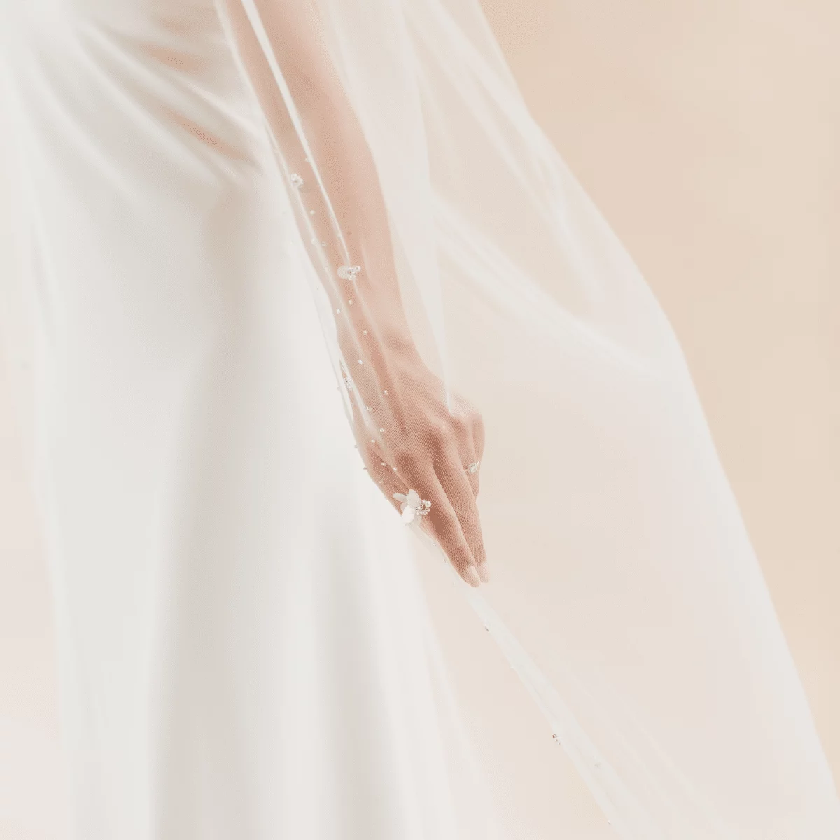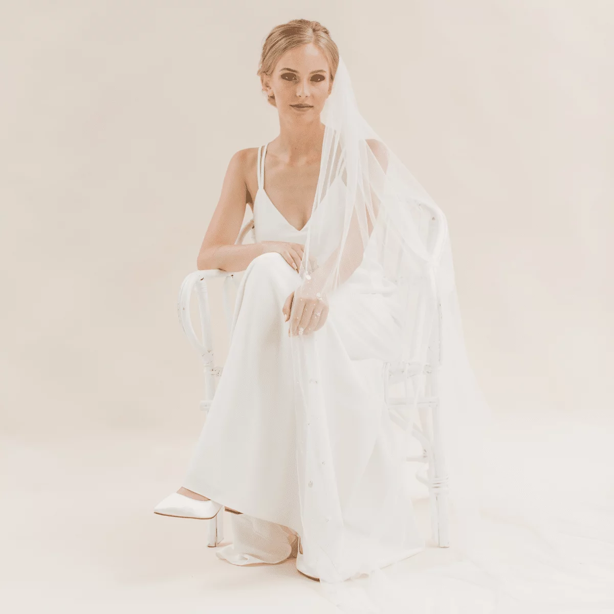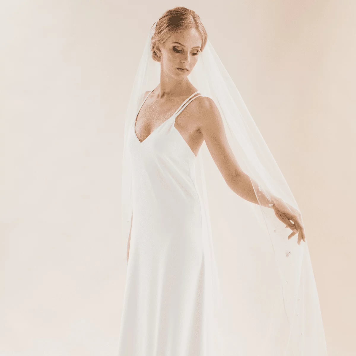 Der wunderschöne Schleier Avezzano von Rainbow Club (Elsa Coloured Shoes) aus hochwertigem Tüll. Der Schleier Avezzano ist in der Farbe Ivory lieferbar und passt hervorragend zu einem Brautkleid in der Farbe Weiß oder Ivory, verziert mit Kristallsteinen. Es handelt sich um ein klassisches Modell aus Tüll in 245 cm Länge.
