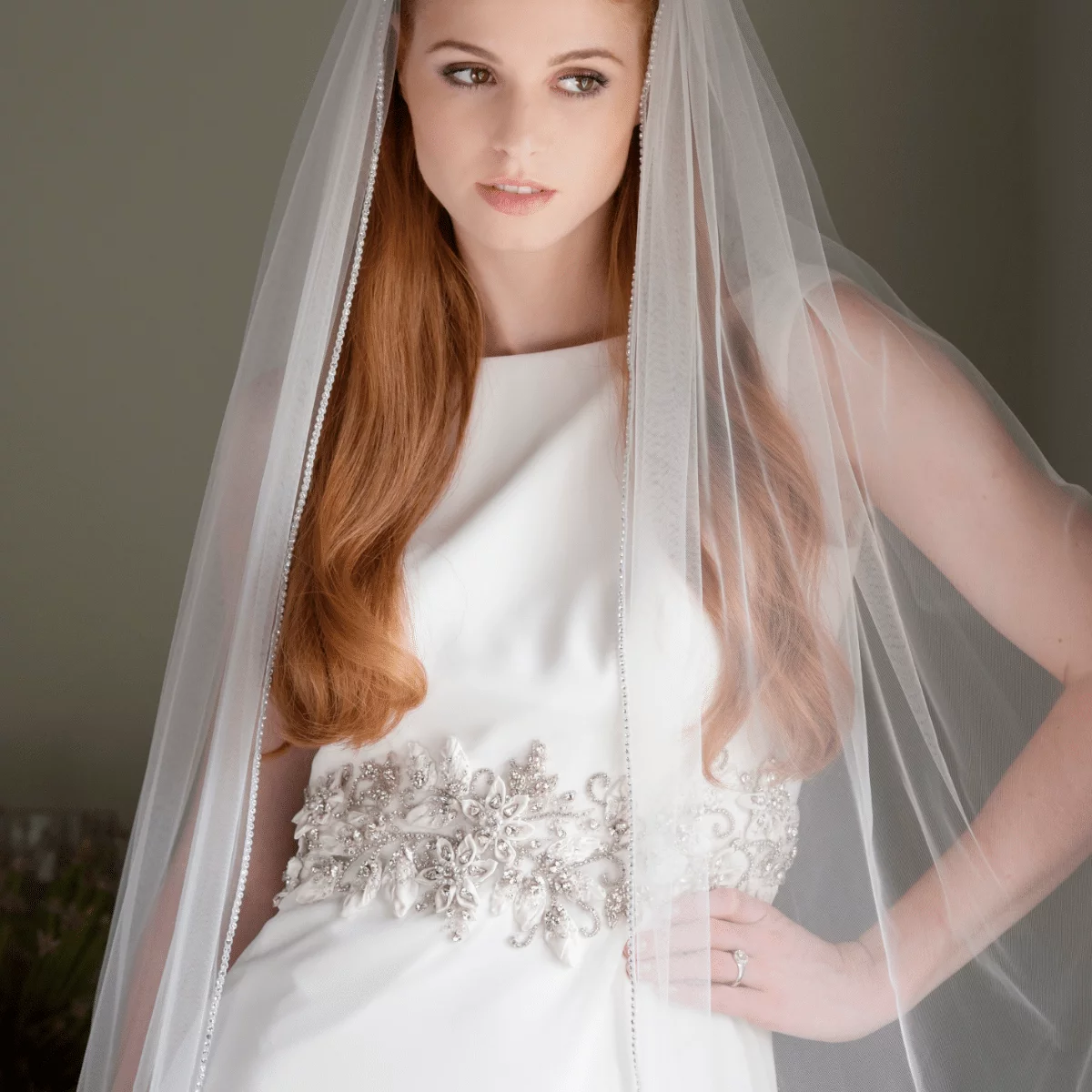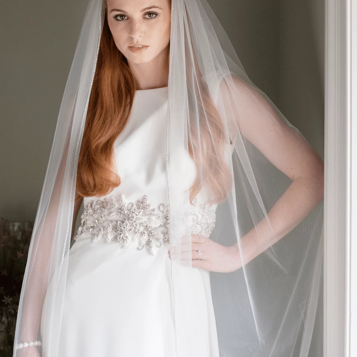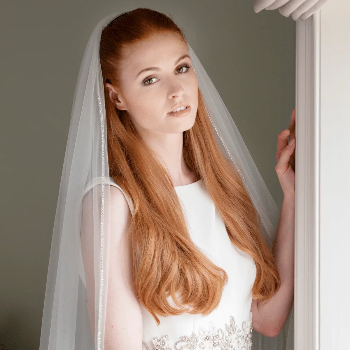 Der wunderschöne Schleier Flamed von Rainbow Club (Elsa Coloured Shoes) aus hochwertigem Tüll. Der Schleier Flamed ist in der Farbe Ivory lieferbar und passt hervorragend zu einem Brautkleid in der Farbe Weiß oder Ivory, verziert mit Kristallsteinen. Es handelt sich um ein klassisches Modell aus Tüll in 245 cm Länge.