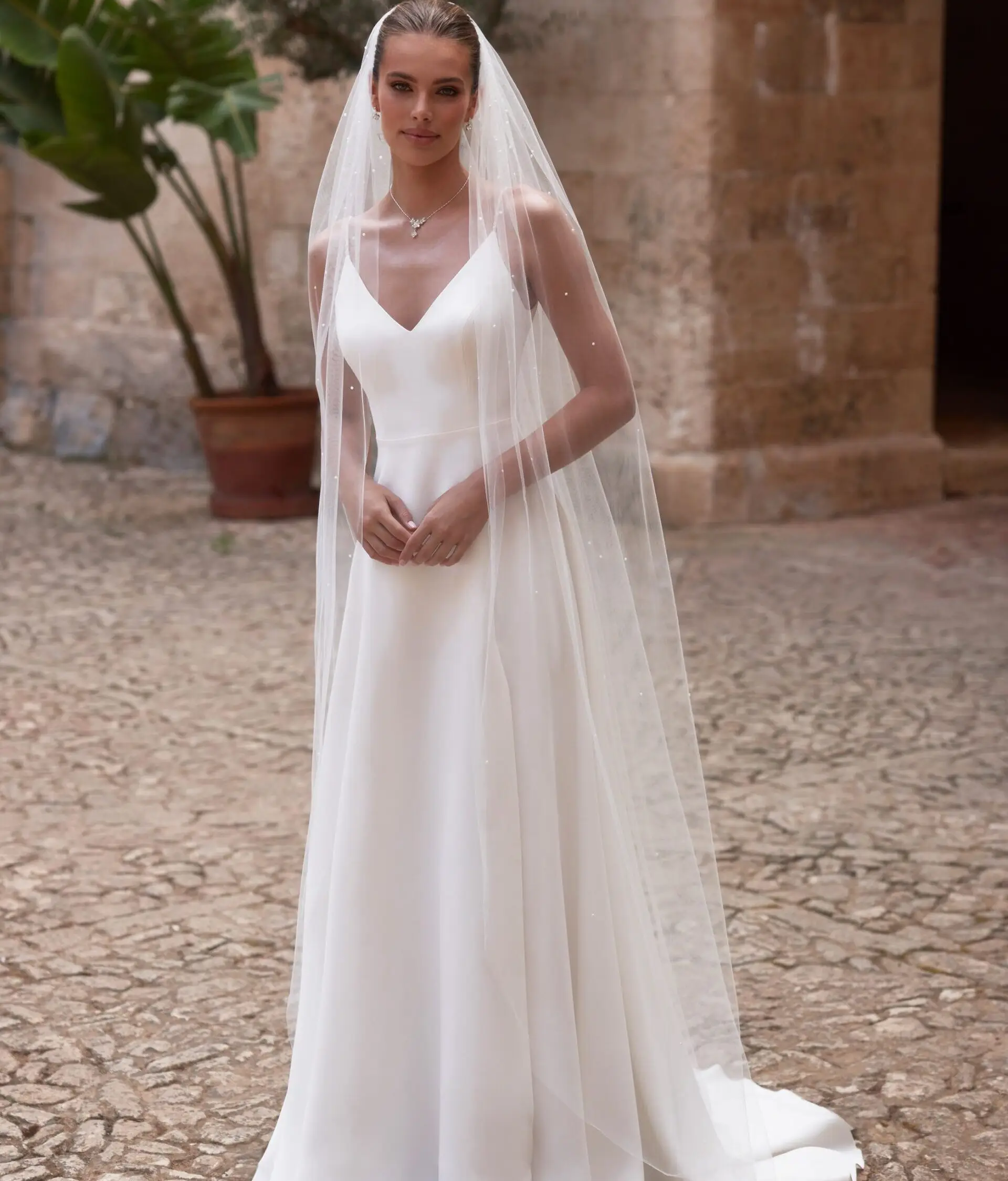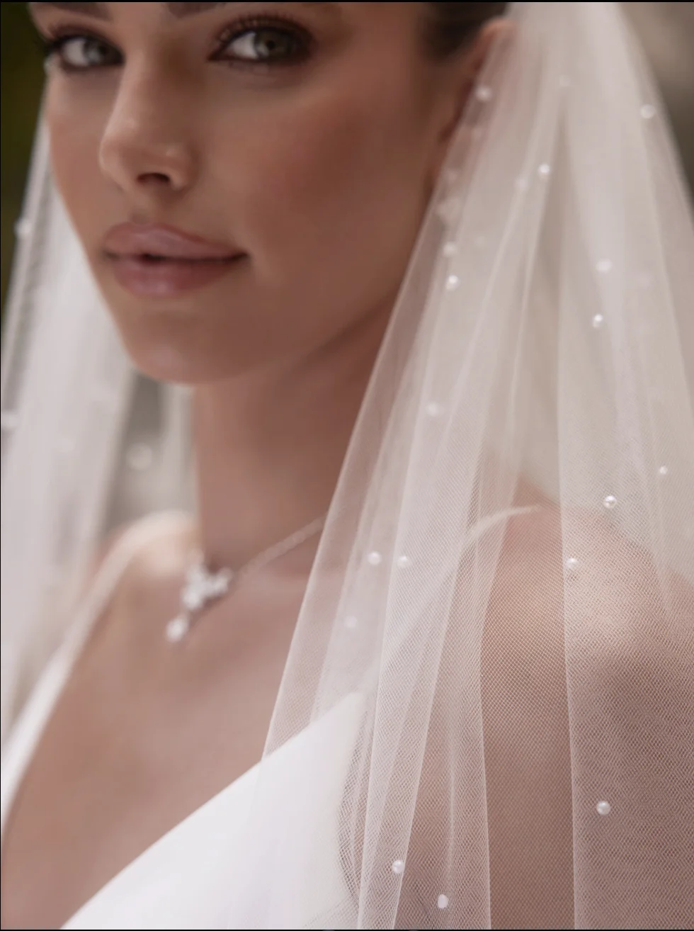 Verziert mit 230 sorgfältig eingearbeiteten Perlen, bringt der Schleier einen edlen Schimmer ins Spiel. Mit einer Länge von 200 cm ist er ideal für einen klassischen, aber dennoch modernen Auftritt. Der integrierte Kamm ermöglicht einen sicheren und bequemen Halt. Entworfen in der EU und gefertigt in unseren eigenen Produktionsstätten, steht dieser Schleier für höchste Qualität und liebevolle Handarbeit.