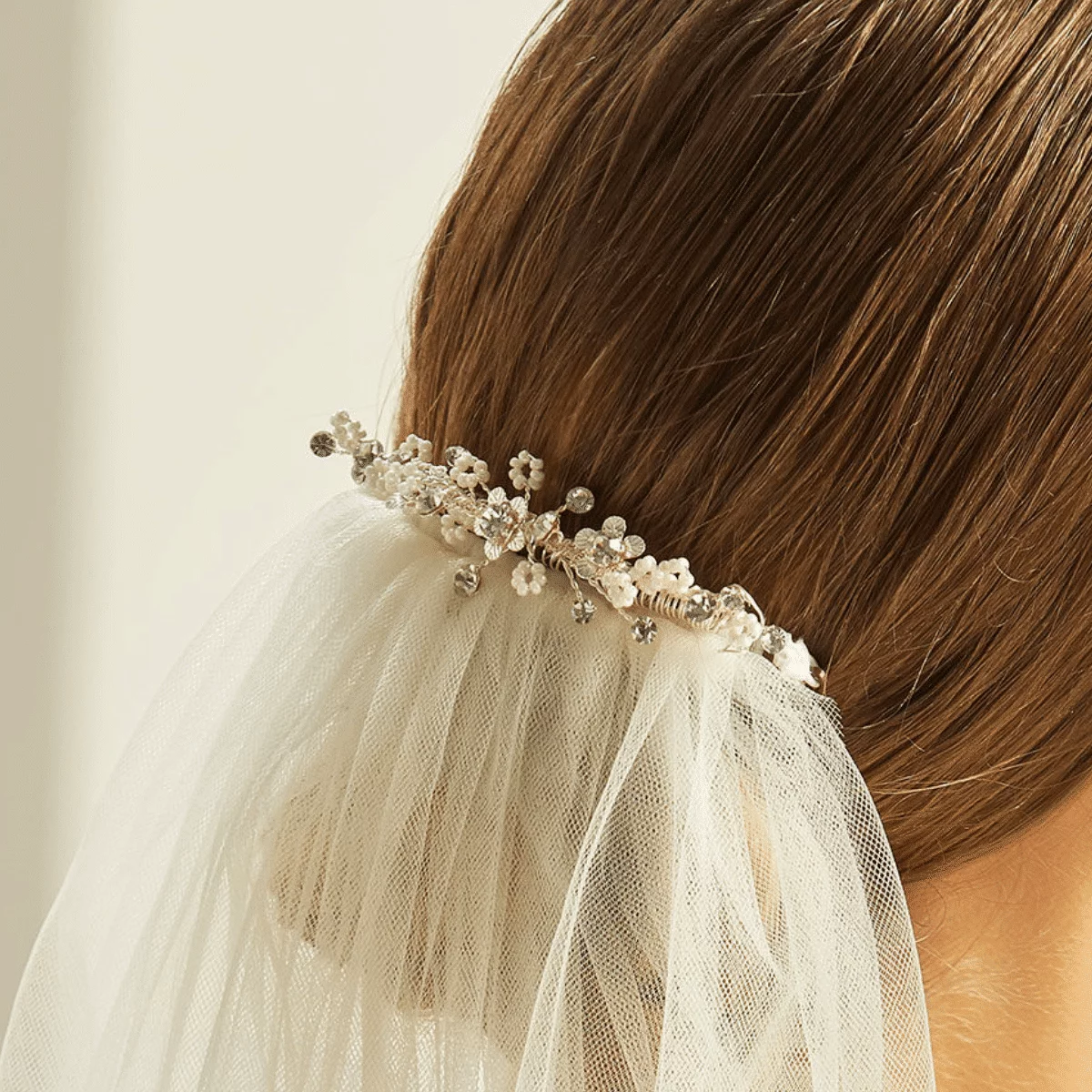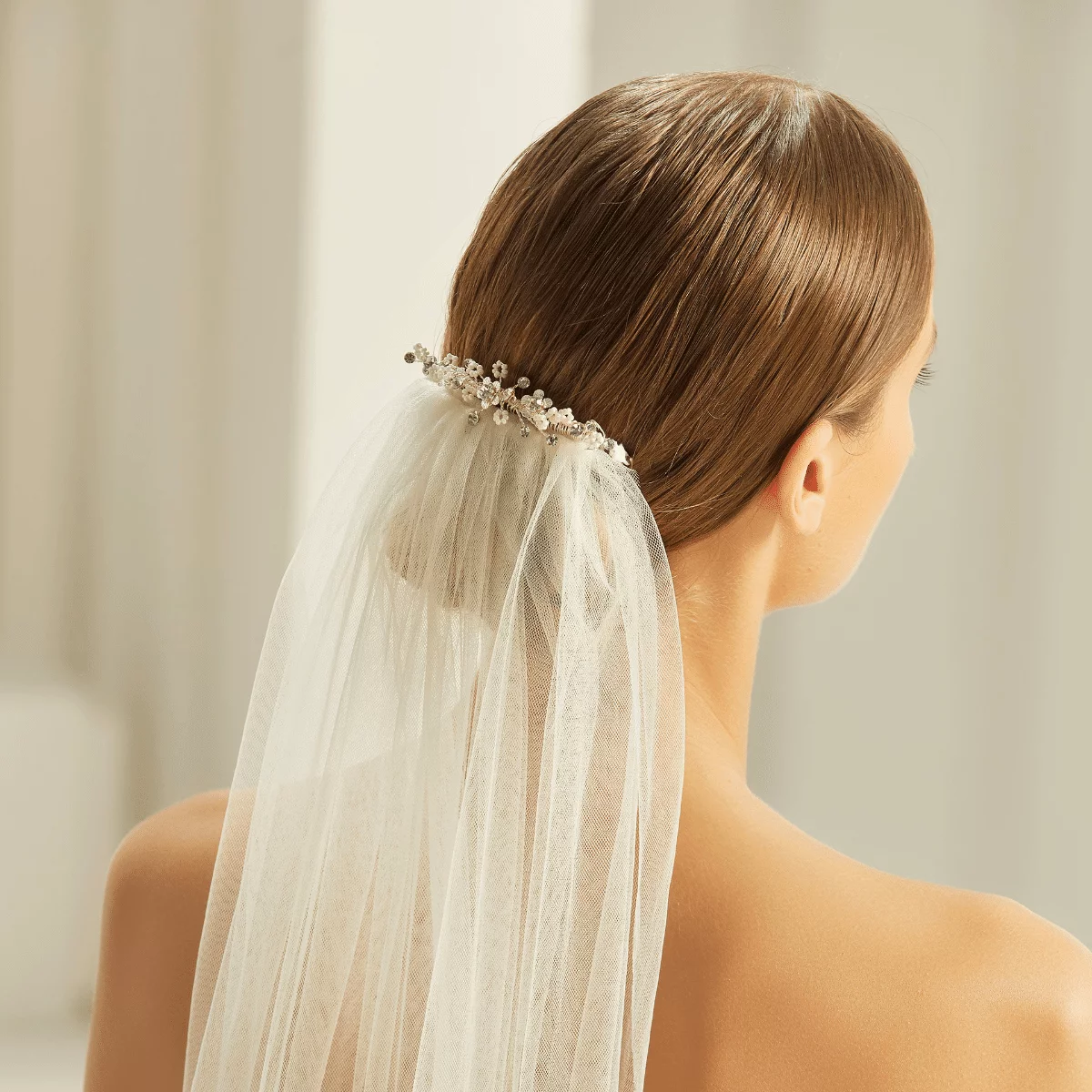 Dieser elegante Schleierabschluss 676 von Avalia (Bianco Evento) ist mit Perlen und Kristallen dekoriert. Dieser Produkt ist in der Farbe Ivory erhältlich. Der Schleierabschluss 676 ist hochwertig verarbeitet und ist ein wunderschönes Accessoire für dein Brautoutfit.