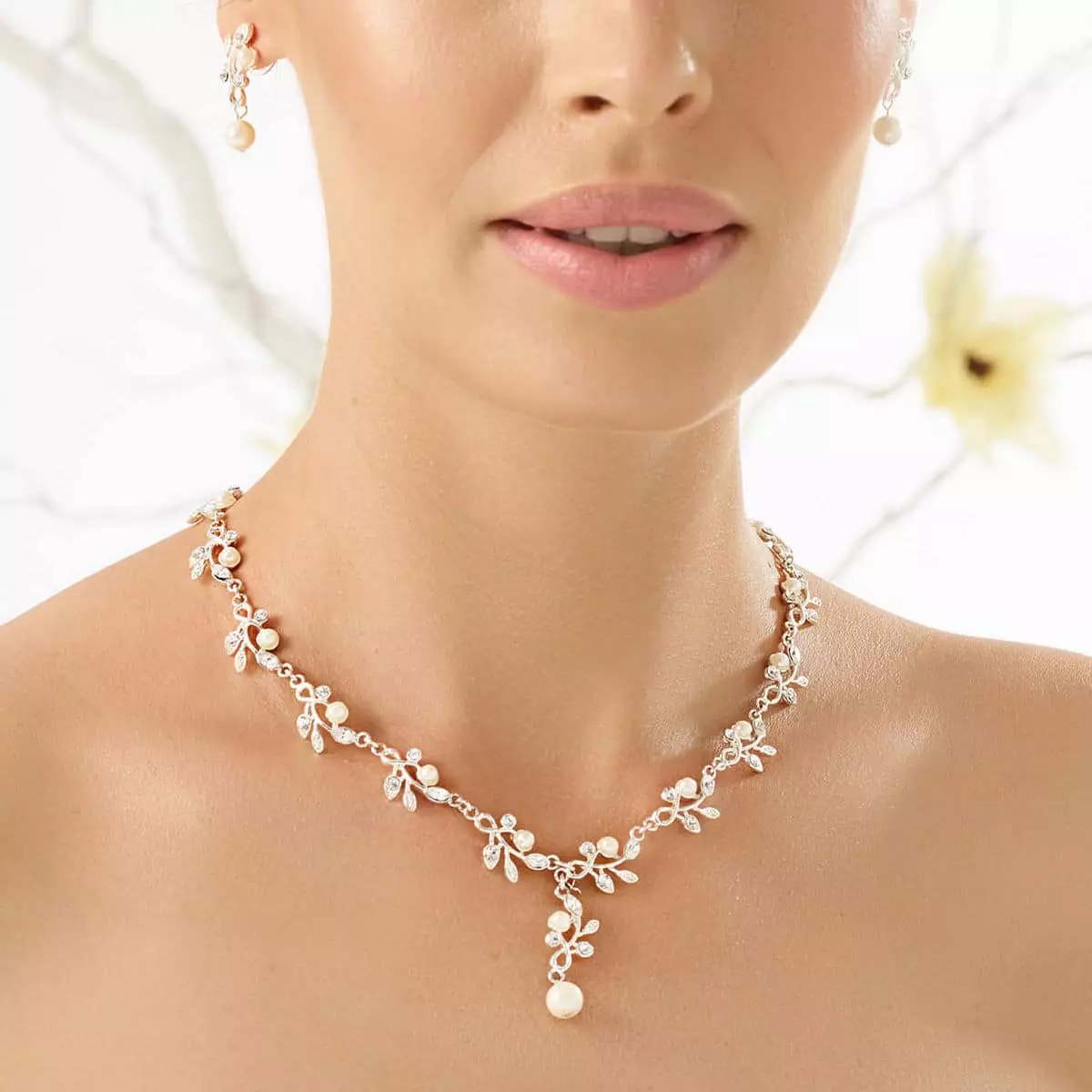 Dieses wunderschöne Schmuckset N31 von Avalia (Bianco Evento) besteht aus Ohrringen und Halskette in der Länge 38 cm, die um 7 cm erweiterbar ist. Schmuckset N31 ist hochwertig verarbeitet und mit Perlen und Kristallsteinen dekoriert. Dieses elegante Schmuckset wird dein Brautlook verschönern und unterzeichnen. Außerdem ist der Metallteil des Sets versilbert und nickelfrei (allergiefrei) und deswegen passt es auch zur empfindlichen Haut. Schmuckset N31 wird in einem eleganten Schmucketui geliefert. Wenn du dich für dieses Schmuckset entscheidest, findest du dazu passendes Diadem „Diadem D38“ ebenfalls auf bystep.de.
