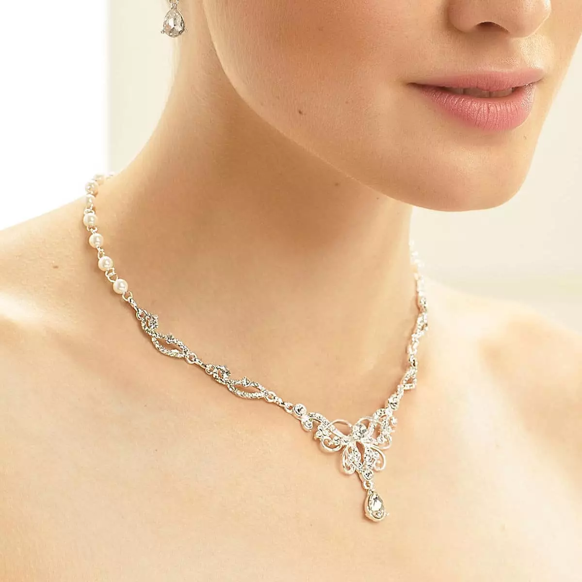 Dieses wunderschöne Schmuckset N40 von Avalia (Bianco Evento) besteht aus Ohrringen und Halskette in der Länge 38 cm, die um 7 cm erweiterbar ist. Schmuckset N40 ist hochwertig verarbeitet und mit Perlen und Kristallsteinen dekoriert. Dieses elegante Schmuckset wird dein Brautlook verschönern und unterzeichnen. Außerdem ist der Metallteil des Sets versilbert und nickelfrei (allergiefrei) und deswegen passt es auch zur empfindlichen Haut. Schmuckset N30 wird in einem eleganten Schmucketui geliefert.