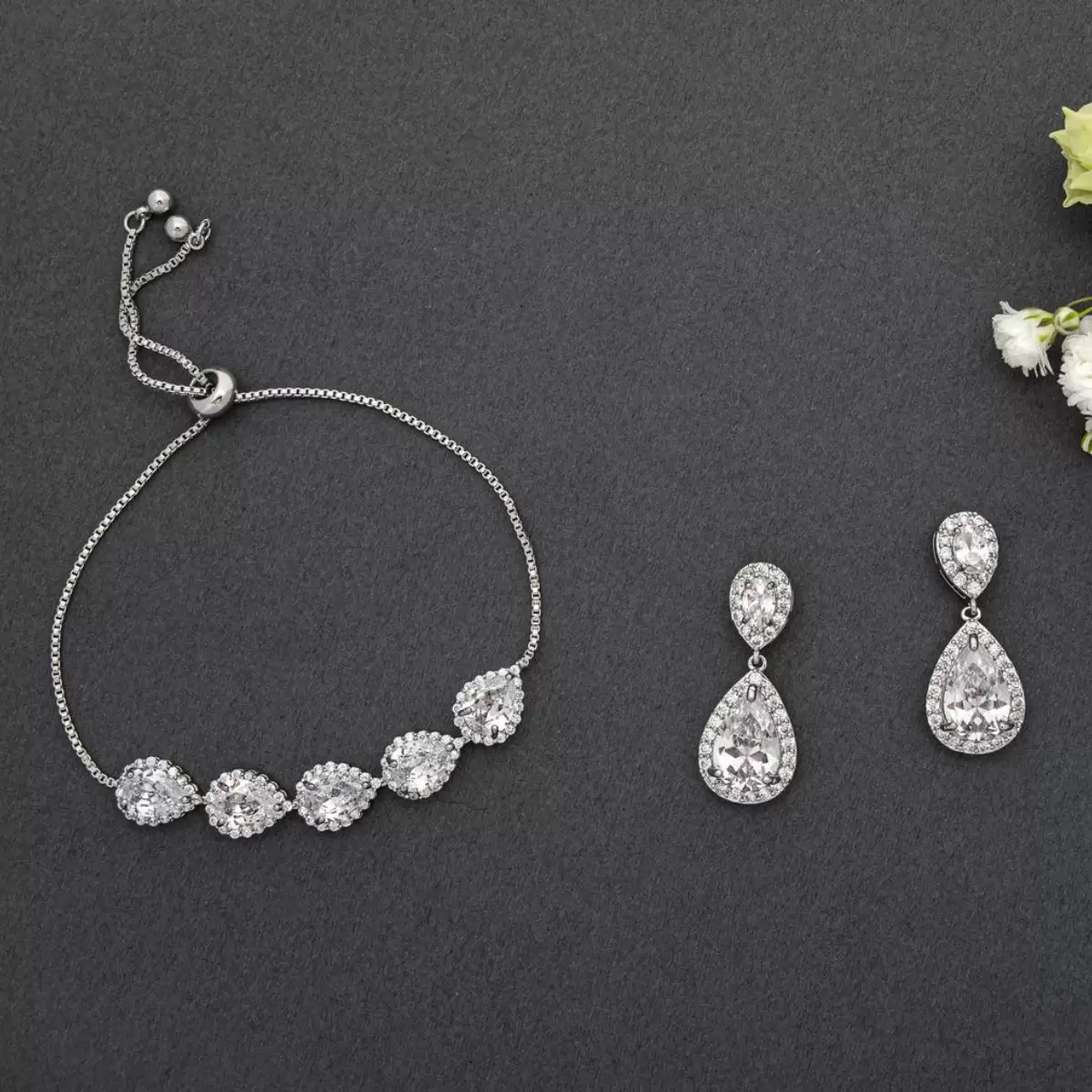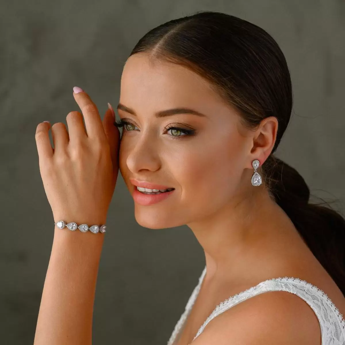 Das Brautschmuck-Set BE211205 von G. Westerleigh besteht aus einem Armband und Ohrringen und wird im eleganten Schmucketui geliefert. Verziert mit hochwertigen Zirkonia-Kristallen. Das Schmuckset ist mit Rhodium bedeckt und besteht somit aus nicht allergischen Materialien (nickel- und bleifrei). Die Länge des Armbands ist frei anpassbar. Das elegante Schmuckset BE211205 kommt bei Hochzeiten und zu wichtigen Anlässen besonders zur Geltung.