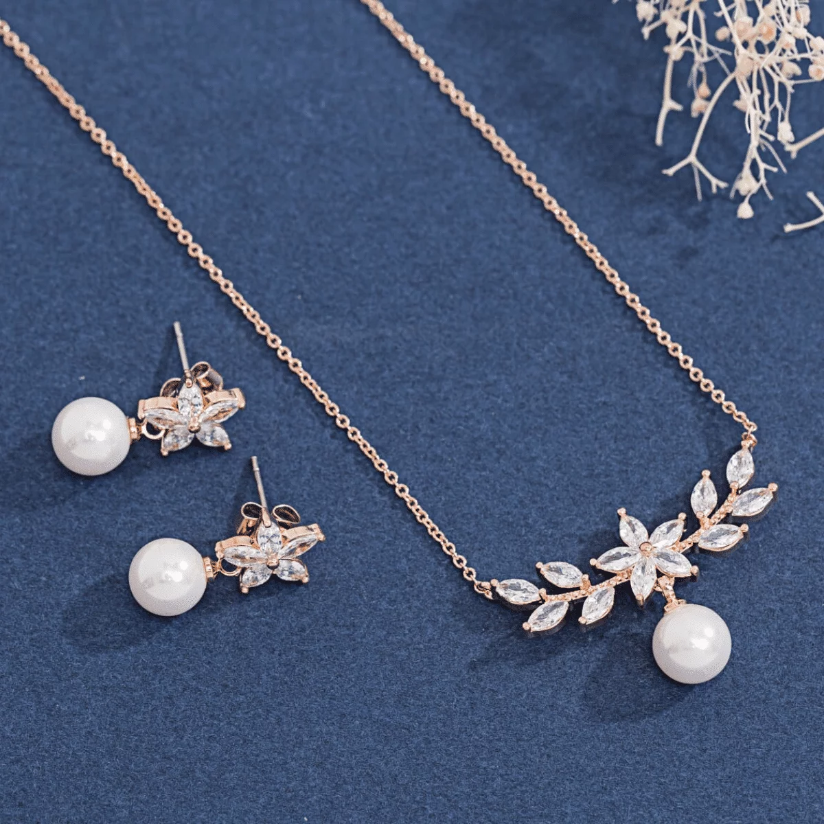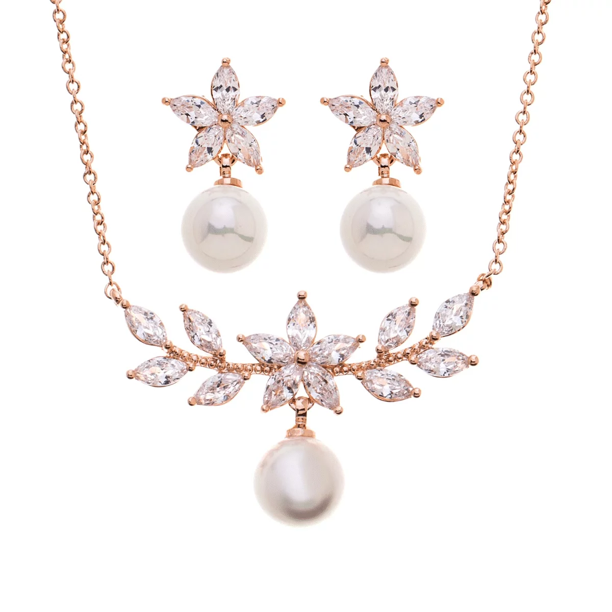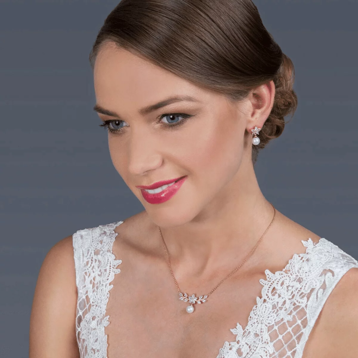 Das wunderschöne Schmuckset DZ0441RG von G. Westerleigh ist mit Cubic Zirconia Kristallen und Perlen verziert, welche in aufwändiger Handarbeit eingearbeitet wurden. Außerdem ist das Brautschmuck-Set mit Rose-Gold bedeckt und antiallergen (nickel- und bleifrei). Es passt daher auch zur empfindlichen Haut. Das Brautschmuck-Set DZ0441RG besteht aus Ohrringen und Halskette und wird im eleganten Schmucketui geliefert. Die Länge der Halskette kann individuell verändert werden. Eine ideale Wahl für Hochzeiten und besondere Anlässe.