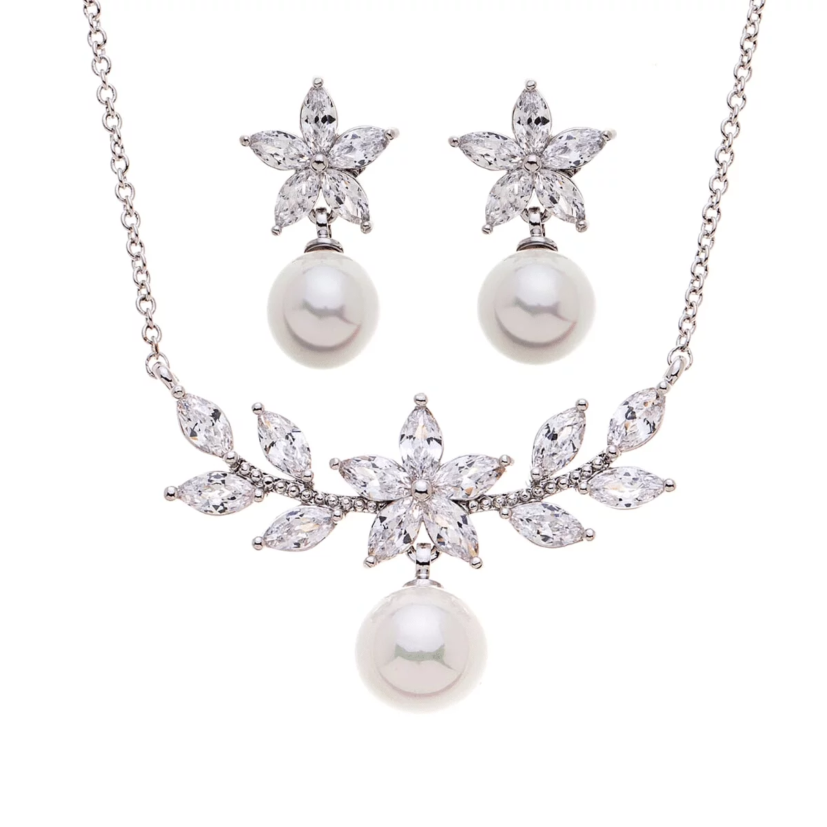 Das wunderschöne Schmuckset DZ0441S von G. Westerleigh ist mit Cubic Zirconia Kristallen und Perlen verziert, welche in aufwändiger Handarbeit eingearbeitet wurden. Außerdem ist das Brautschmuck-Set mit Platinum bedeckt und antiallergen (nickel- und bleifrei). Es passt daher auch zur empfindlichen Haut. Das Brautschmuck-Set DZ0441S besteht aus Ohrringen und Halskette und wird im eleganten Schmucketui geliefert. Die Länge der Halskette kann individuell verändert werden. Eine ideale Wahl für Hochzeiten und besondere Anlässe.