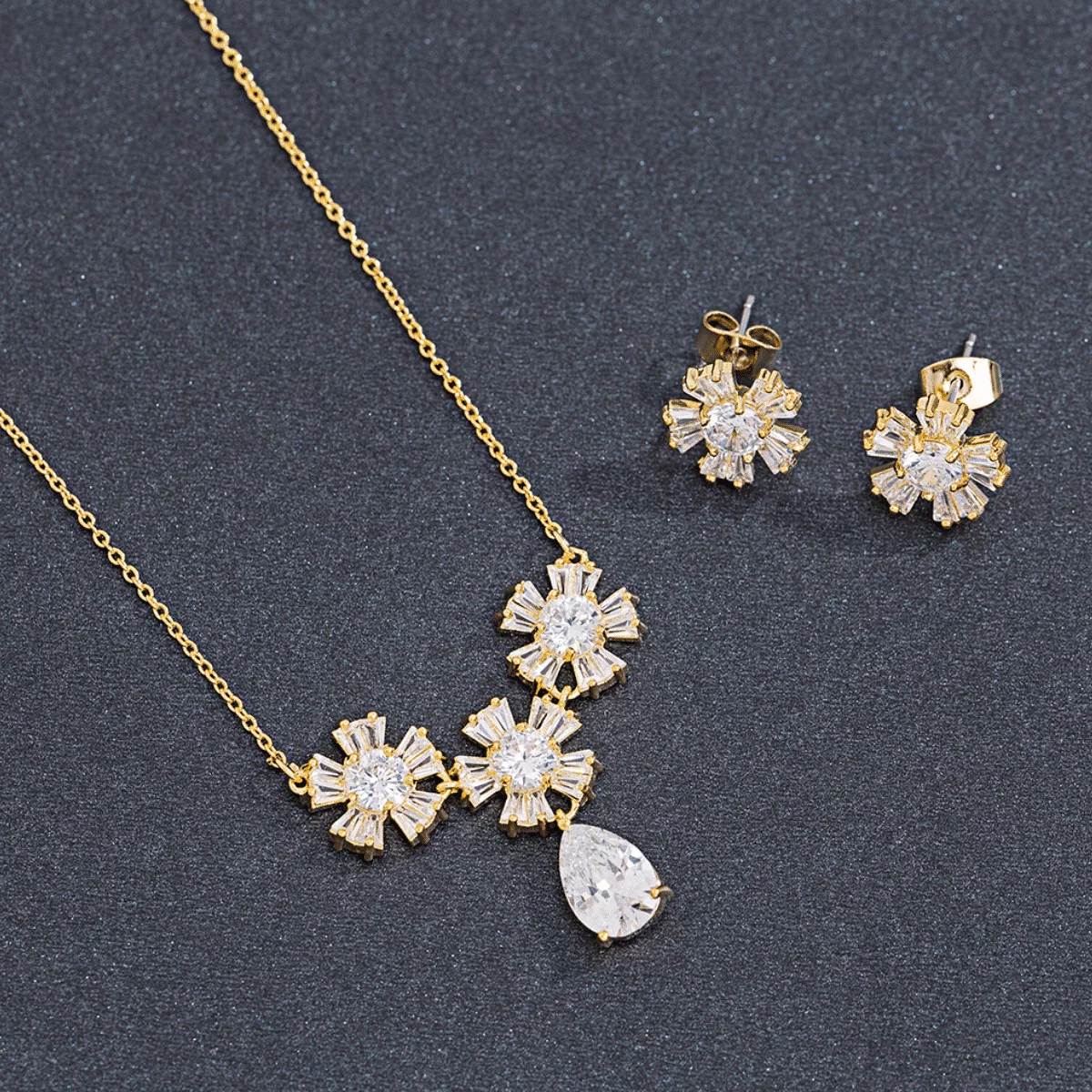 Das wunderschöne Schmuckset DZ0511G von G. Westerleigh ist mit Cubic Zirconia Kristallen verziert, welche in aufwändiger Handarbeit eingearbeitet wurden. Außerdem ist das Brautschmuck-Set mit Gold bedeckt und antiallergen (nickel- und bleifrei). Es passt daher auch zur empfindlichen Haut. Das Brautschmuck-Set DZ0511G besteht aus Ohrringen und Halskette und wird im eleganten Schmucketui geliefert. Die Länge der Halskette kann individuell verändert werden. Eine ideale Wahl für Hochzeiten und besondere Anlässe.