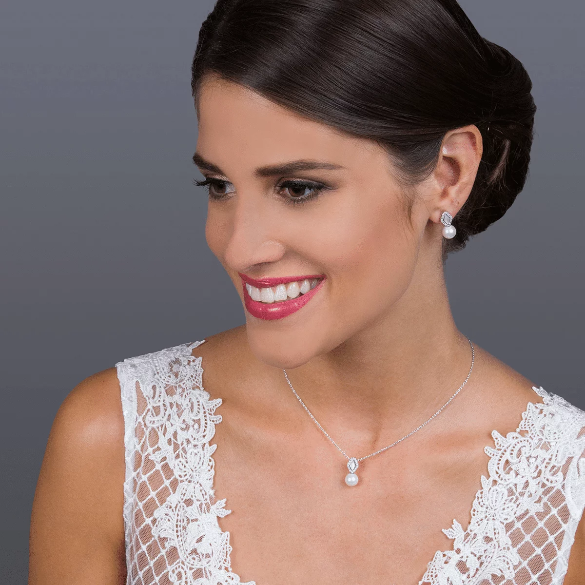 Das wunderschöne Schmuckset DZX0500 von G. Westerleigh ist mit Cubic Zirconia Kristallen und Perlen verziert, welche in aufwändiger Handarbeit eingearbeitet wurden. Außerdem ist das Brautschmuck-Set mit Platinum bedeckt und antiallergen (nickel- und bleifrei). Es passt daher auch zur empfindlichen Haut. Das Brautschmuck-Set DZX0500 besteht aus Ohrringen und Halskette und wird im eleganten Schmucketui geliefert. Die Länge der Halskette kann individuell verändert werden. Eine ideale Wahl für Hochzeiten und besondere Anlässe.