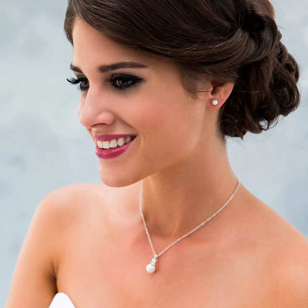 Schlichtes Schmuckset HS-J02 von G. Westerleigh. Verziert mit feinen Perlen, die in aufwändiger Handarbeit eingearbeitet wurden. Dieses Schmuckset besteht aus nicht allergischen Materialien (nickel- und bleifrei). Daher ist es auch für empfindliche Haut geeignet. Das Set HS-J02 besteht aus Ohrringen und Halskette und wird im eleganten Schmucketui geliefert. Zudem lässt sich die Länge der Halskette individuell verändern. Bestens geeignet als Hochzeitsschmuck für die Braut oder als Schmuck für besondere Anlässe. Ein echter Hingucker!